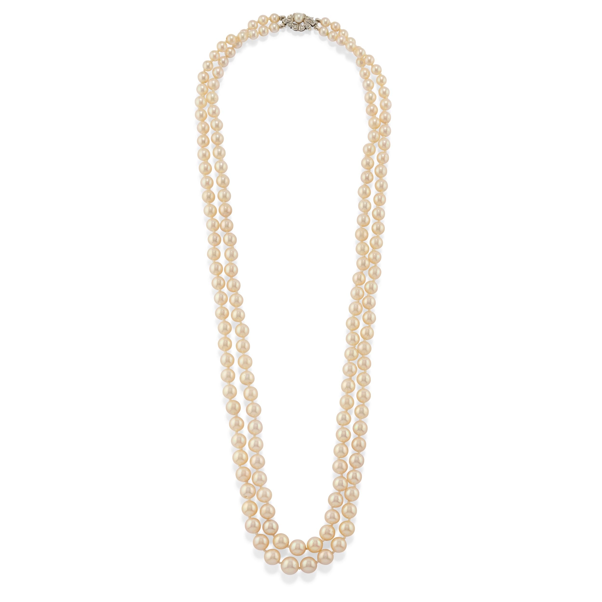 realizzata a due fili di perle coltivate Giappone, disposte a degradè dal centro di mm 9,00/5,00.