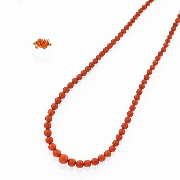 Collana e anello in corallo  - Asta Gioielli / Summer - Associazione Nazionale - Case d'Asta italiane