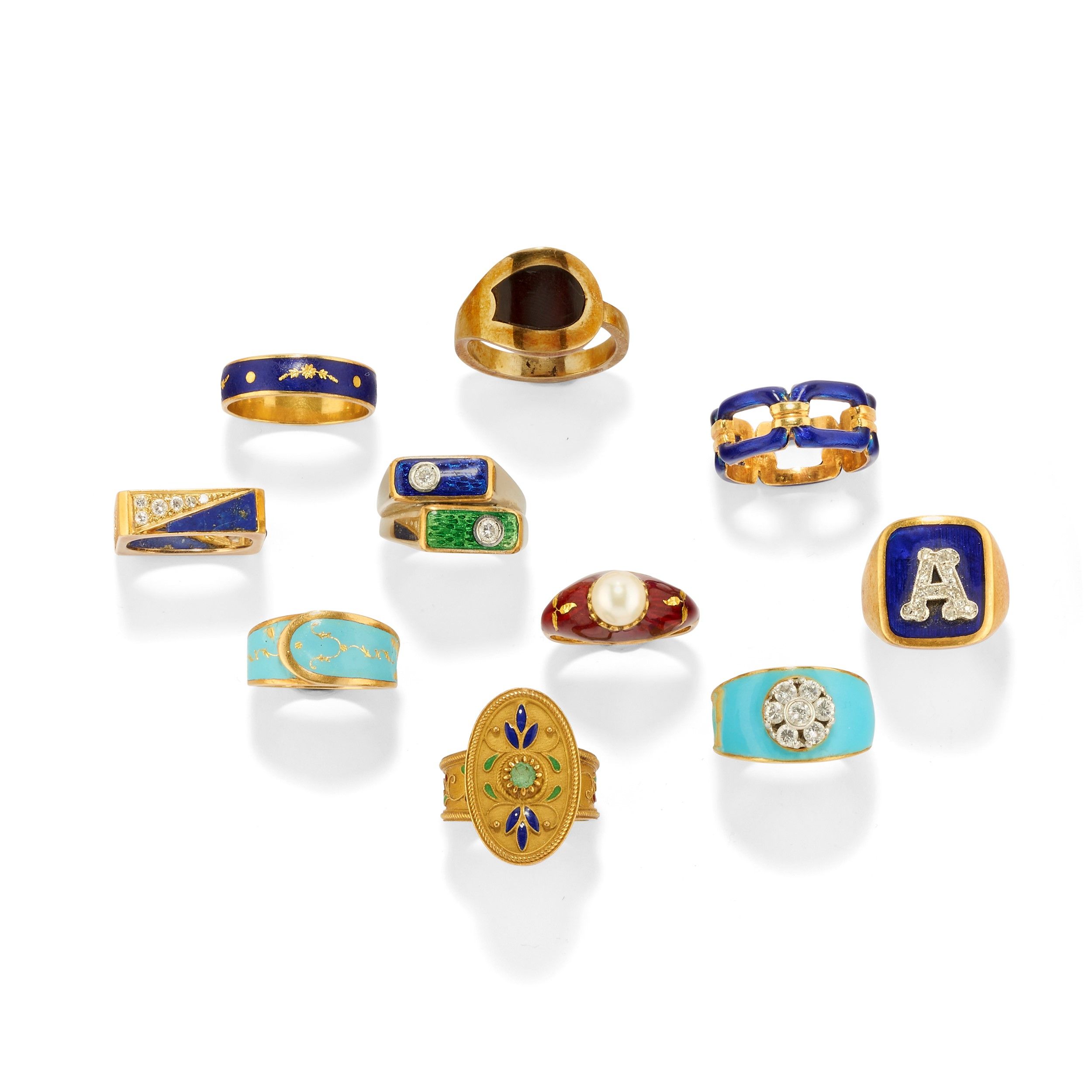 Dieci anelli con smalti  - Asta Gioielli / Summer - Associazione Nazionale - Case d'Asta italiane