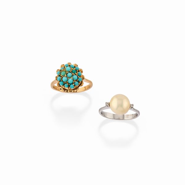 perla coltivata, turchesi, diamanti taglio huit-huit.
