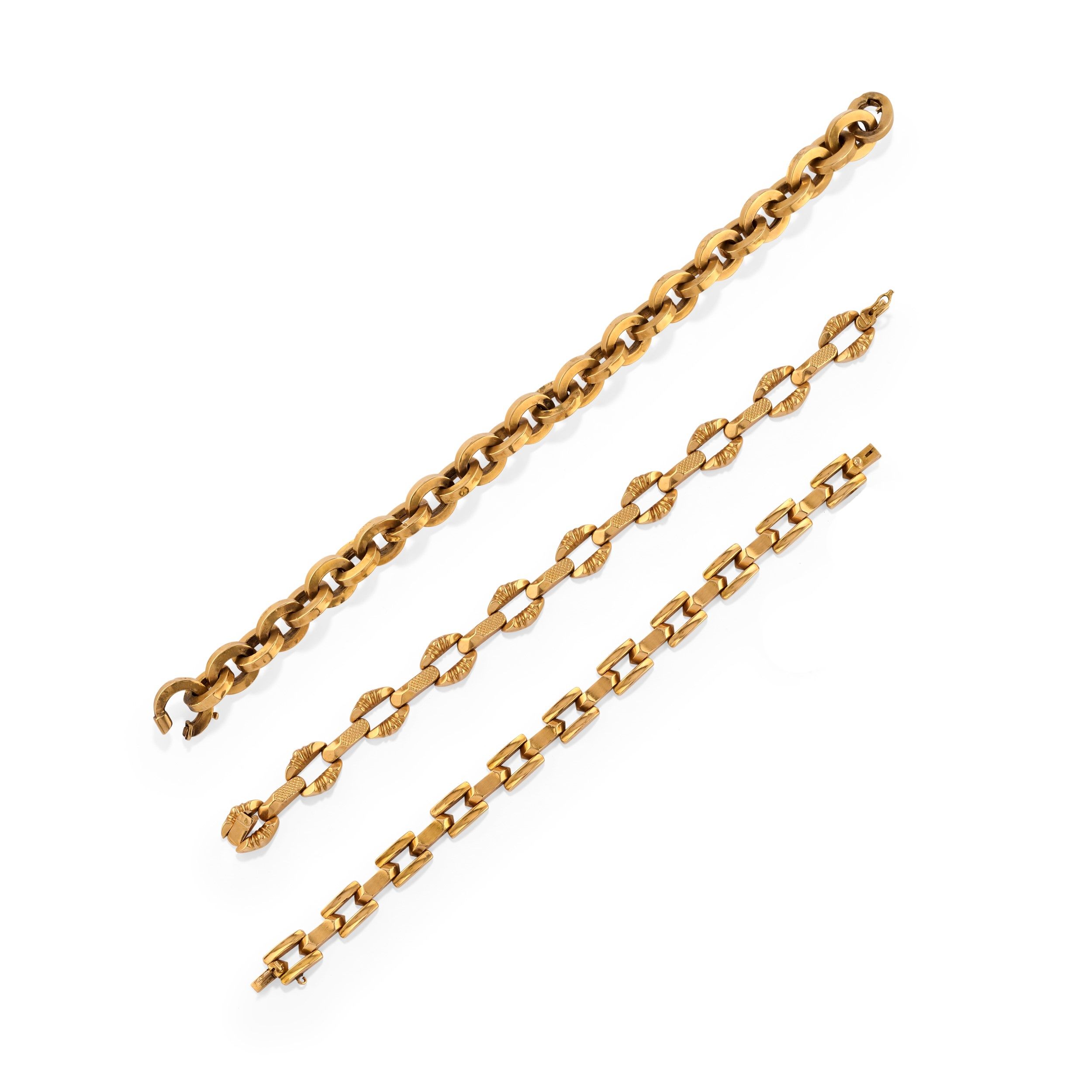 composto da tre bracciali di differenti realizzazioni, difetti (visibili ammaccature).