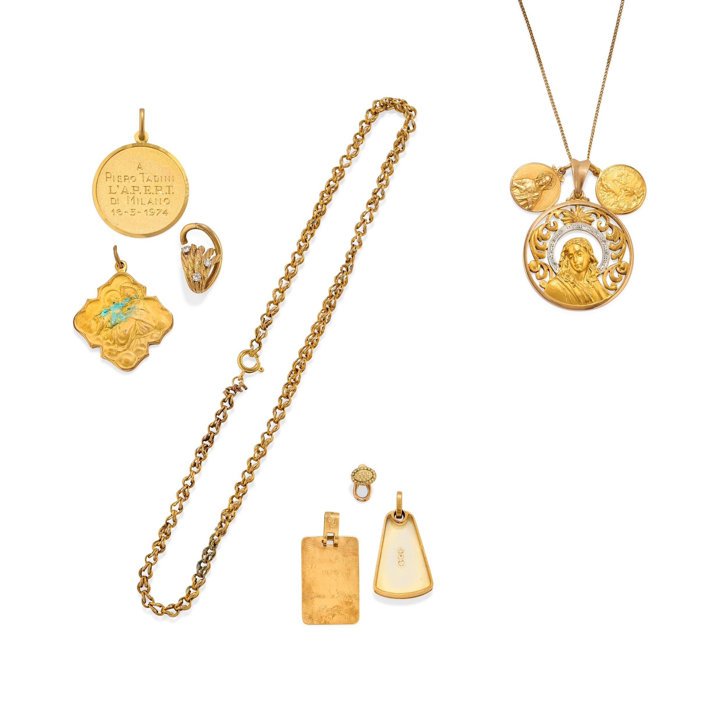 composto da otto gioielli, di varie forme e raffigurazioni, diamanti taglio brillante e huit-huit.