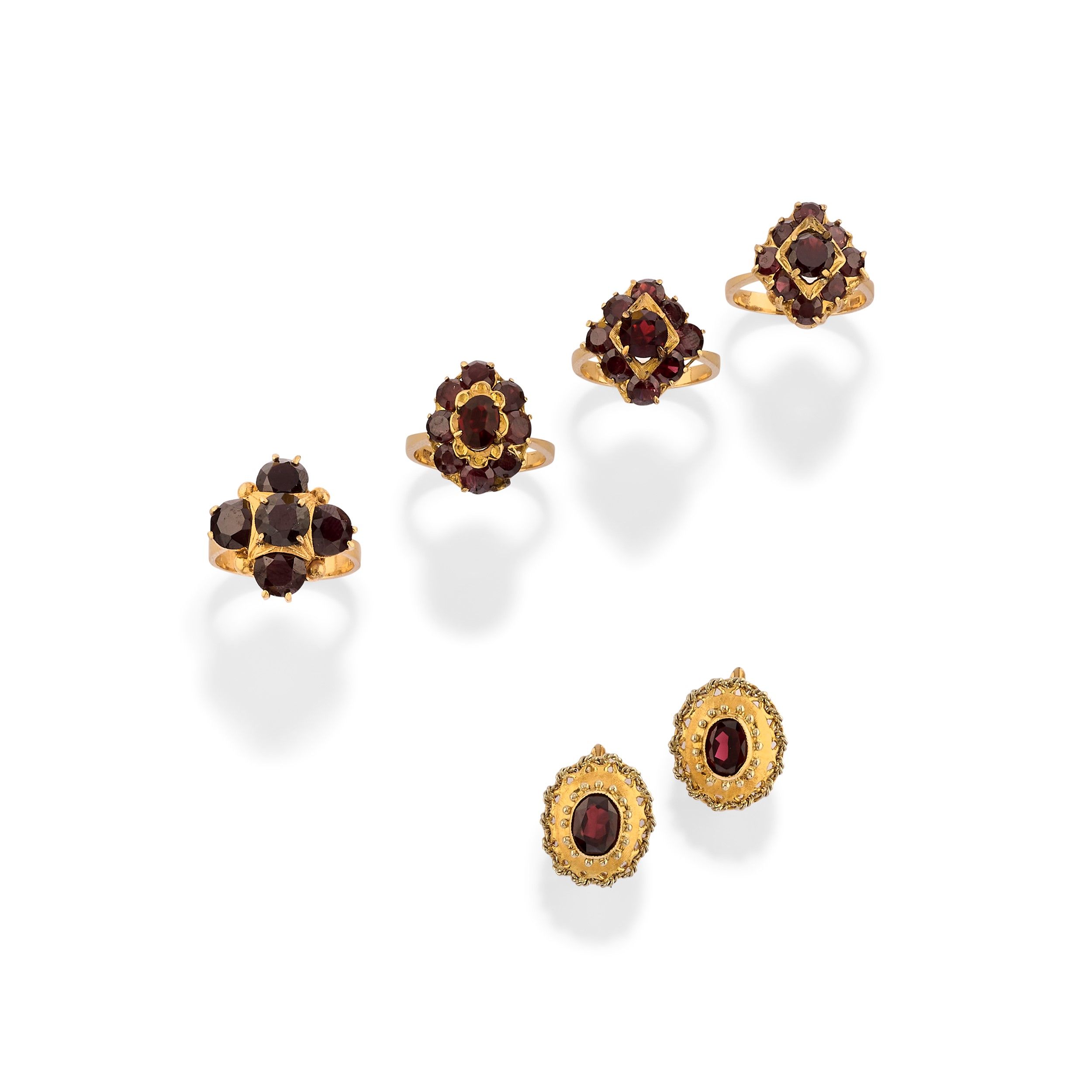 composto da quattro anelli e da una coppia di orecchini con chiusura a perno e clip.