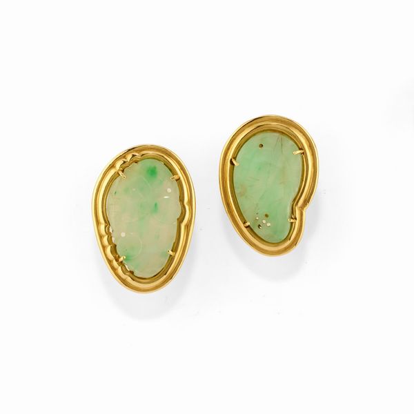 di forma stilizzata con chiusura perno e clip (i due orecchini non sono speculari nella forma).