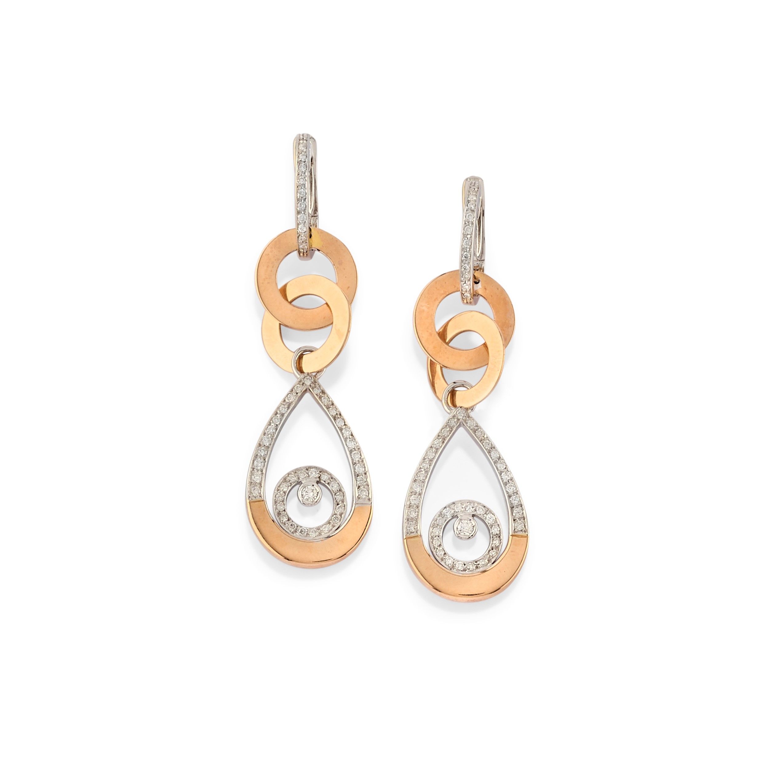 a cerchi con terminale a goccia, diamanti taglio brillante per totale ct 1,00 circa, chiusura perno e clip.