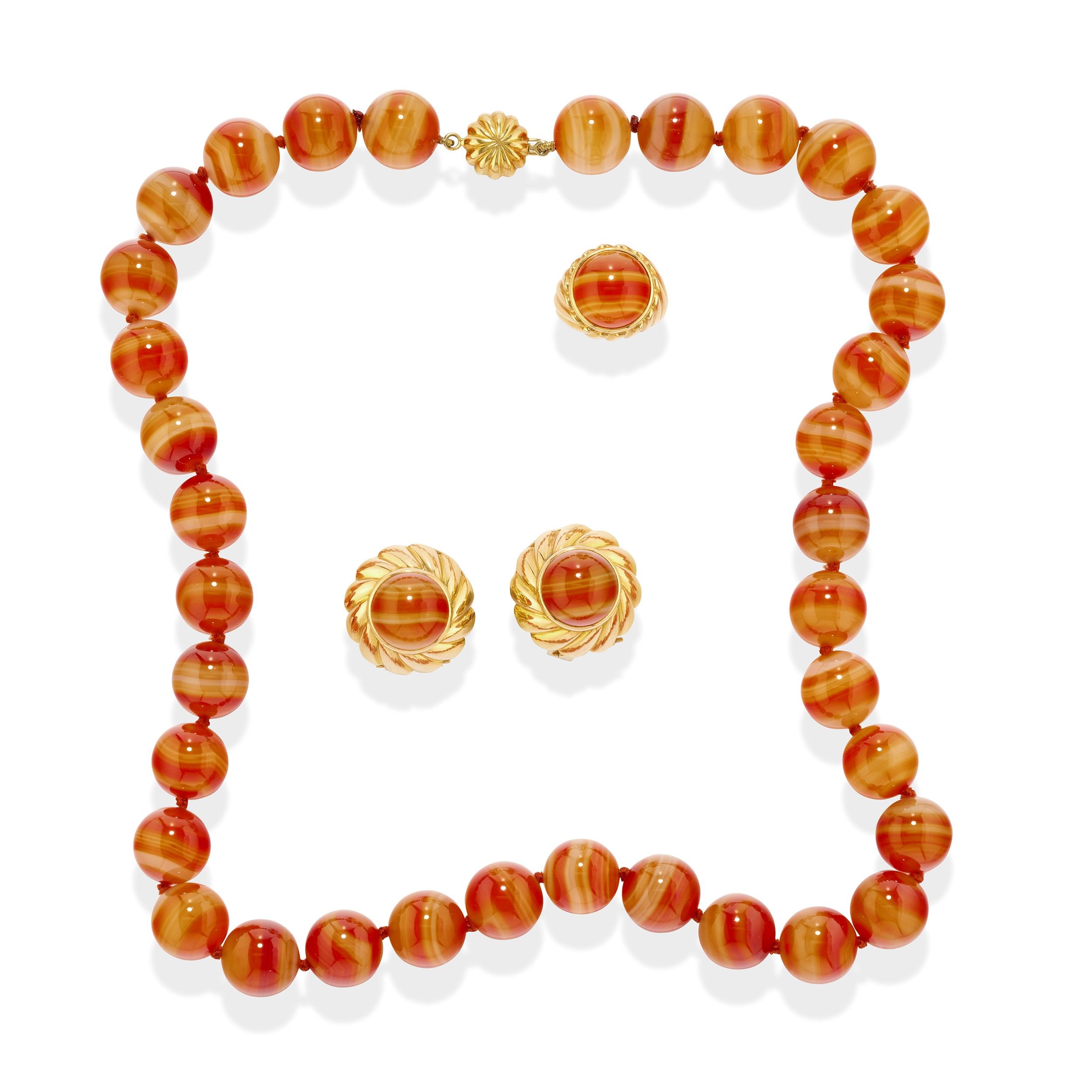 composta da collana, anello e coppia di orecchini con chiusura perno, clip e farfalla (una farfalla mancante).