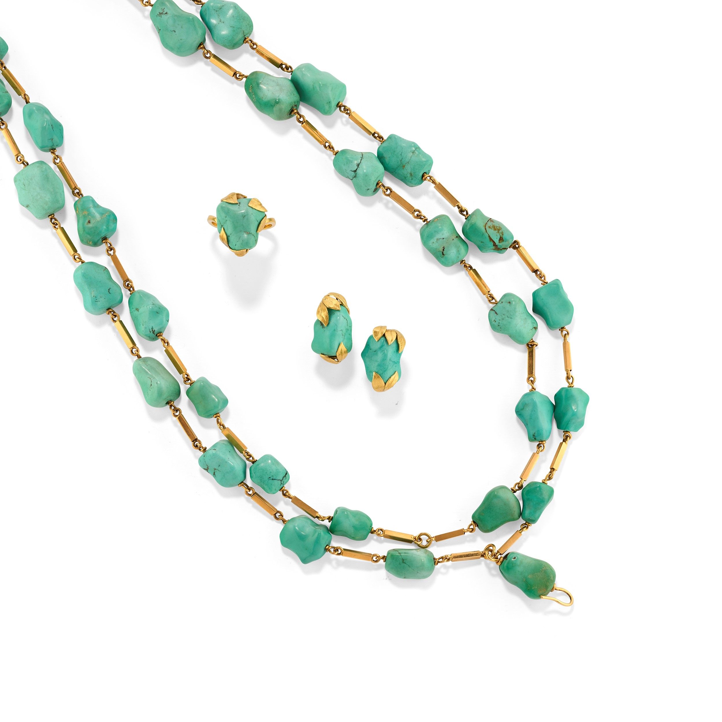 composta da collana, anello e e coppia di orecchini con chiusura perno e clip.