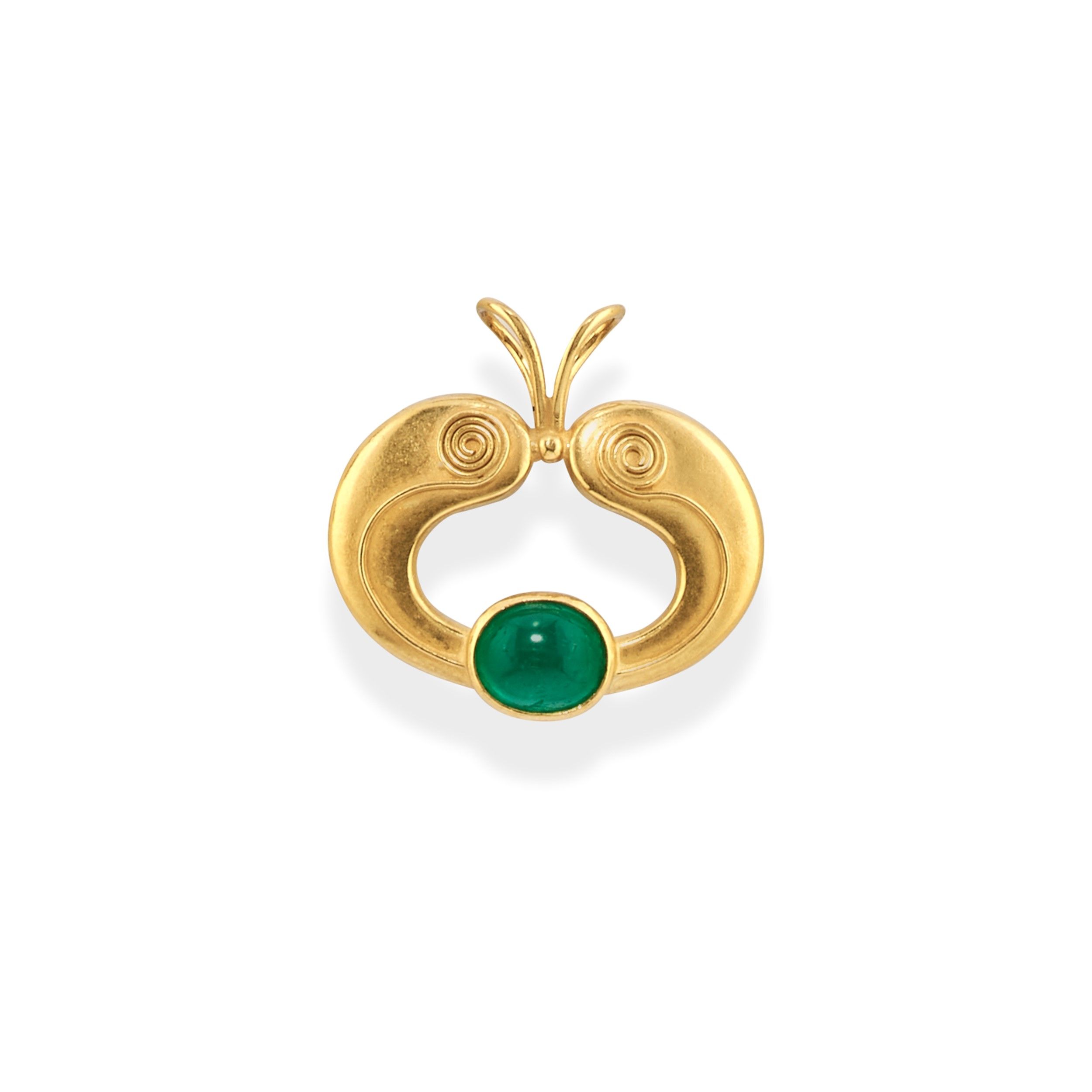 di forma stilizzata con al centro smeraldo taglio ovale cabochon.