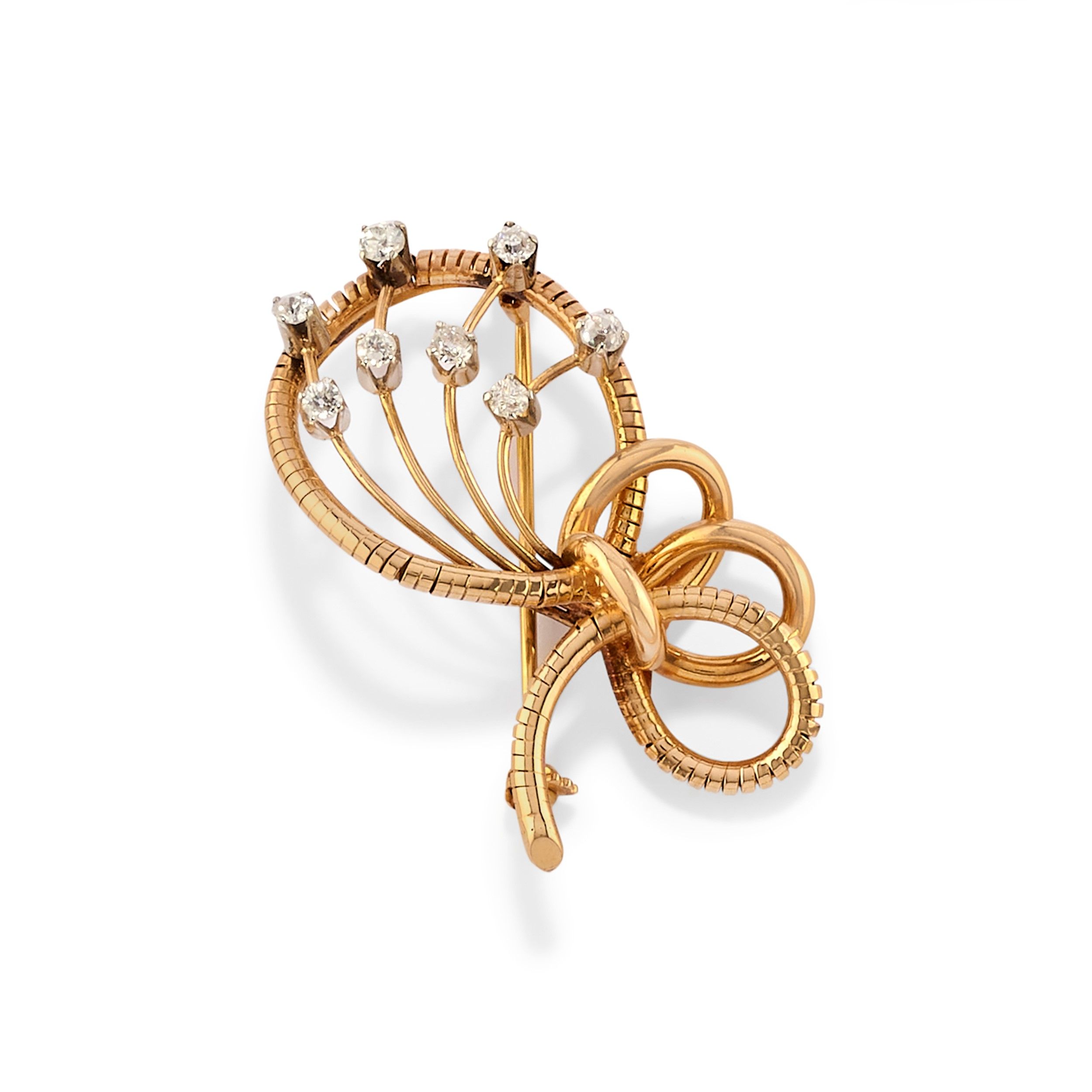 ad eleganti volute con diamanti taglio vecchio per totale ct 0,70 circa.