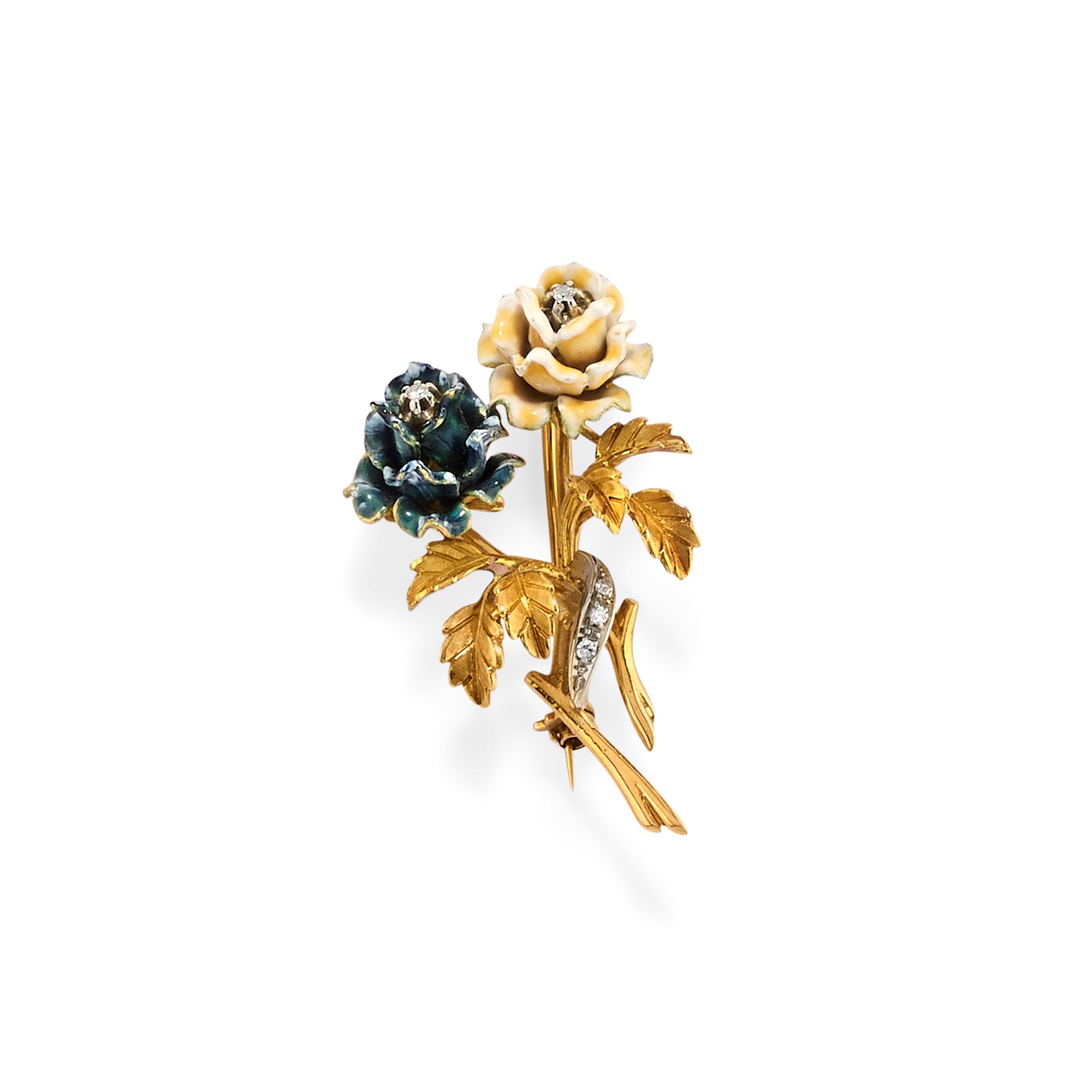 realizzata a ramage, smalto policromo e diamanti taglio huit-huit.