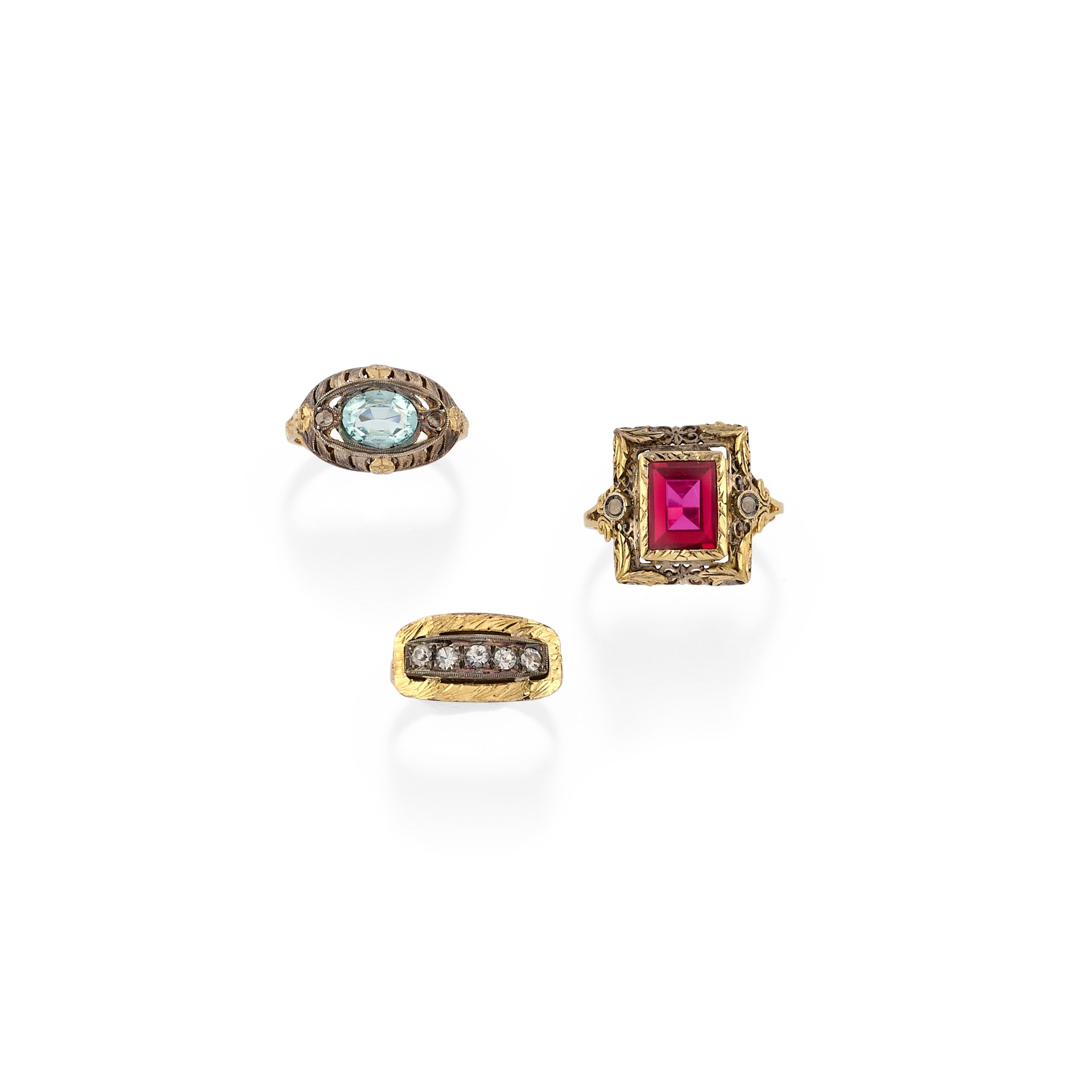 Tre anelli con pietre di colore  - Asta Gioielli / Summer - Associazione Nazionale - Case d'Asta italiane