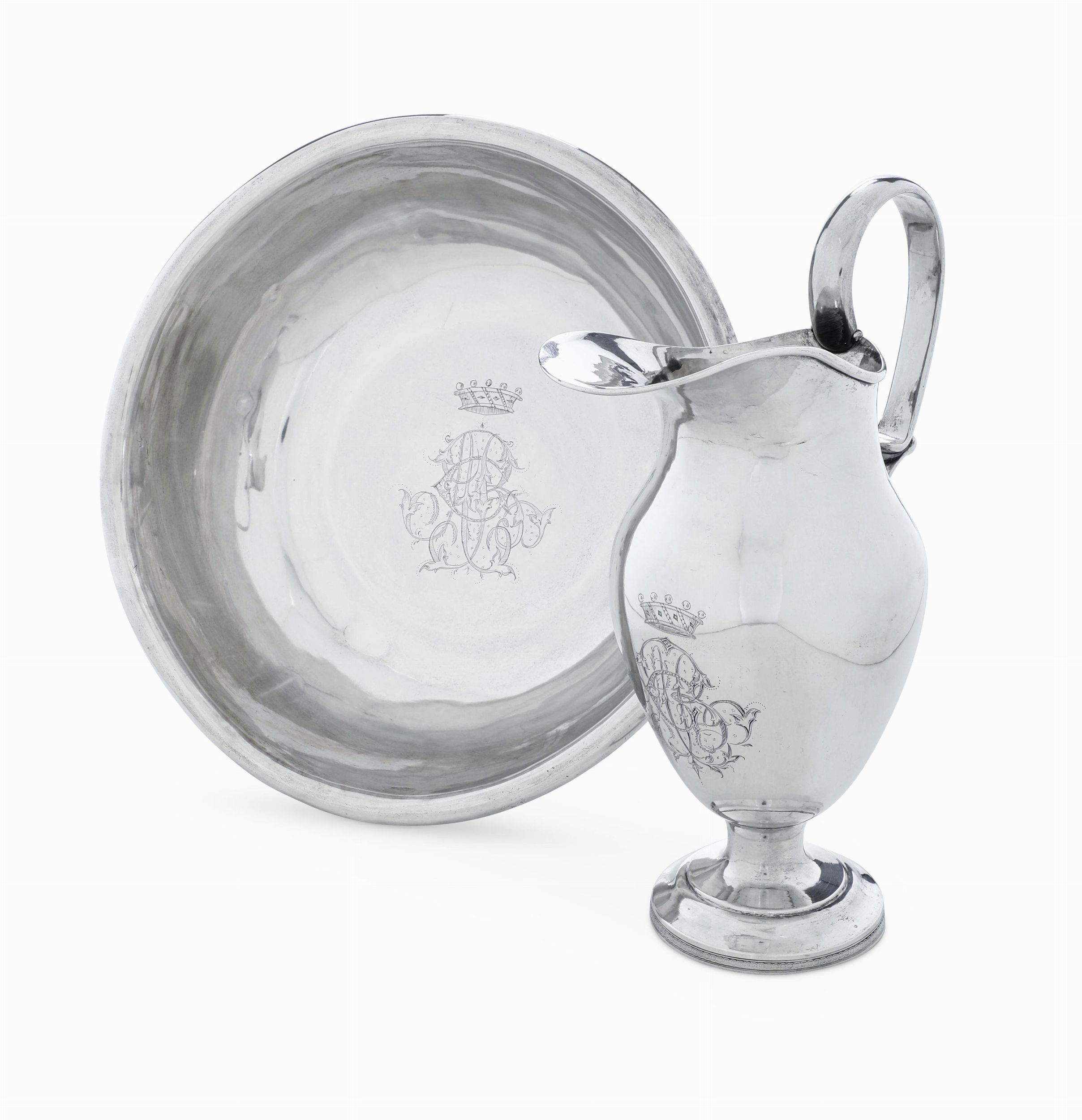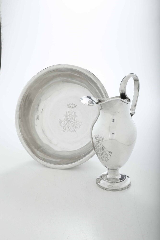 Brocca e bacile. Sicilia (Catania?), prima metà del XIX secolo. Marchi camerali [..]