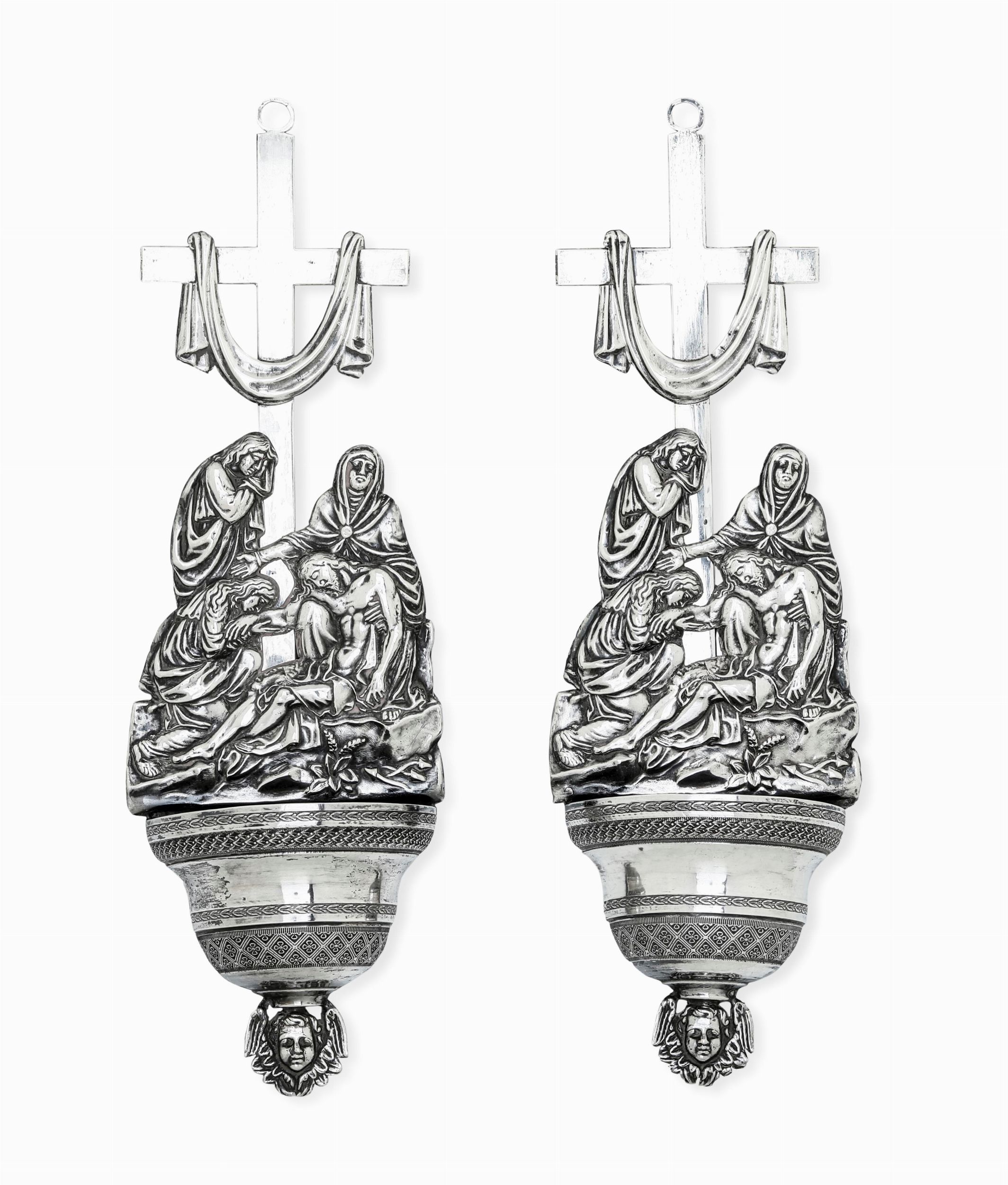 Coppia di acquasantiere. Milano, XIX secolo. Argentiere Tommaso Panizza (1835-18 [..]