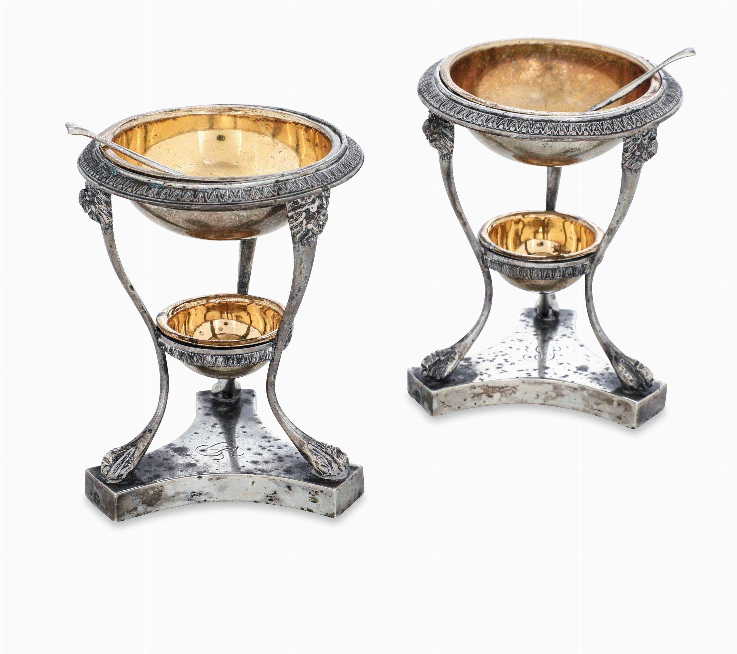 Coppia di saliere. Firenze XIX secolo. Marchio di garanzia in uso dal 1832 al 1872.