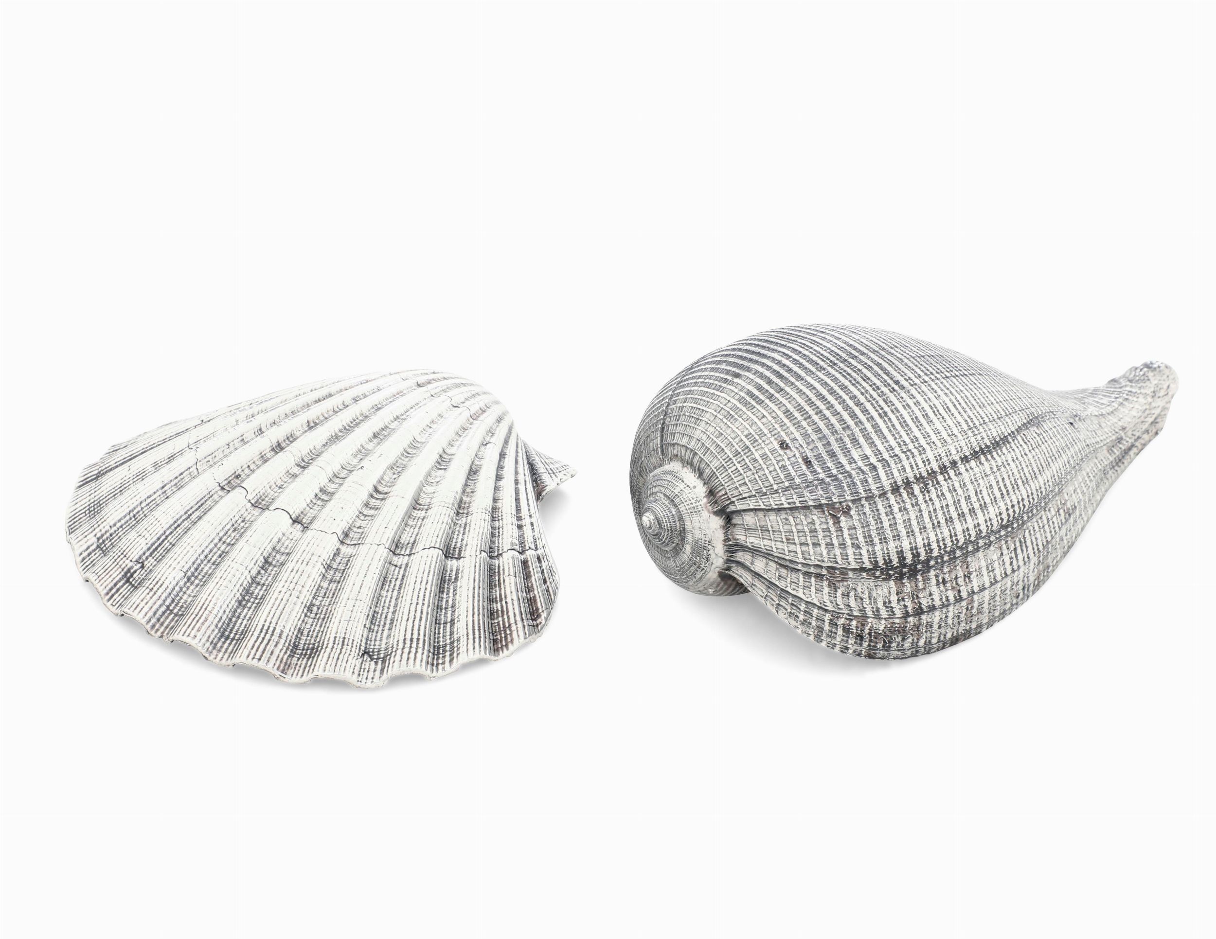 Due conchiglie rivestite in argento. Etichetta a scudo Mario Buccellati. Italia [..]
