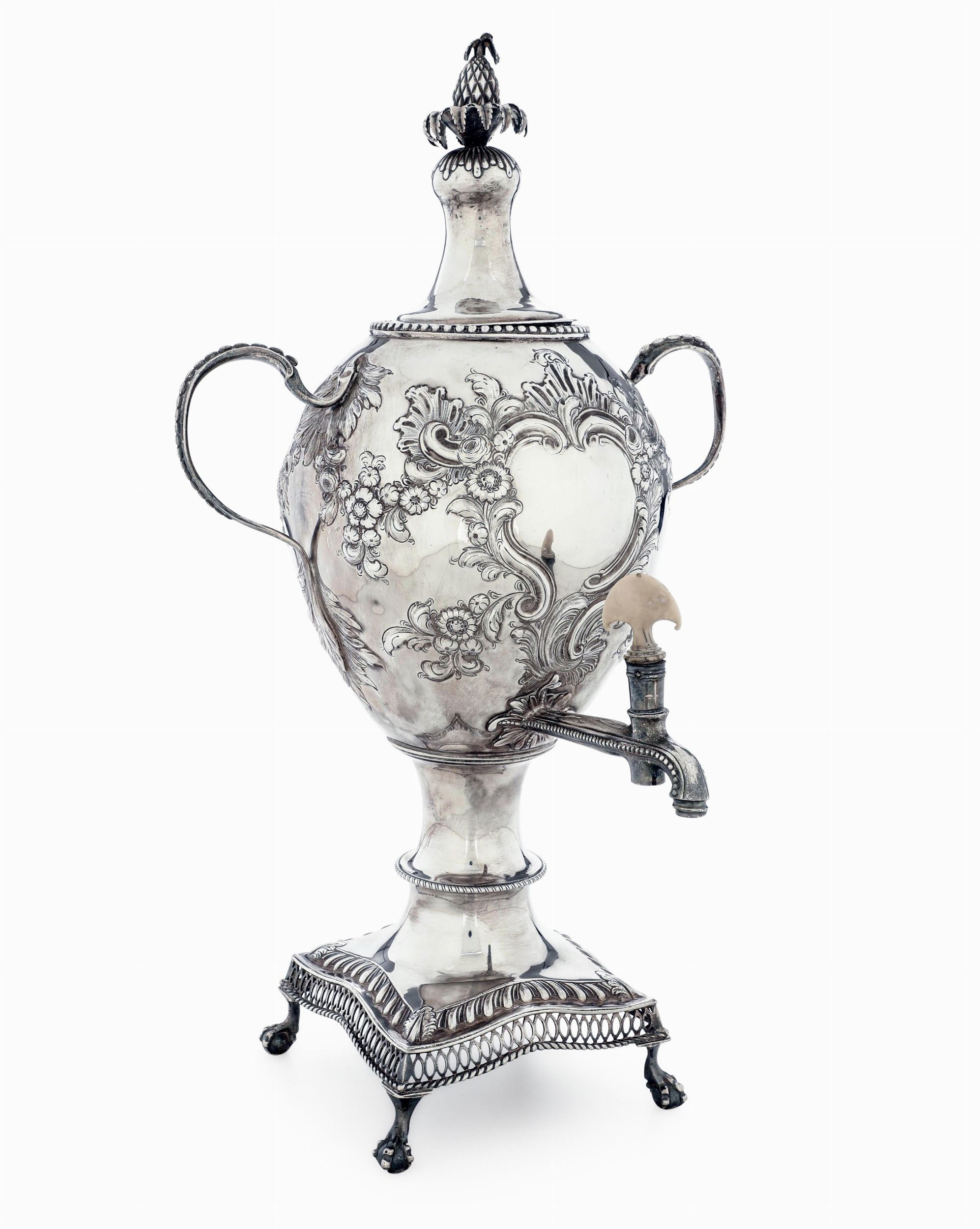 Samovar in argento fuso, sbalzato e cesellato. Inghilterra, marchio per la città [..]