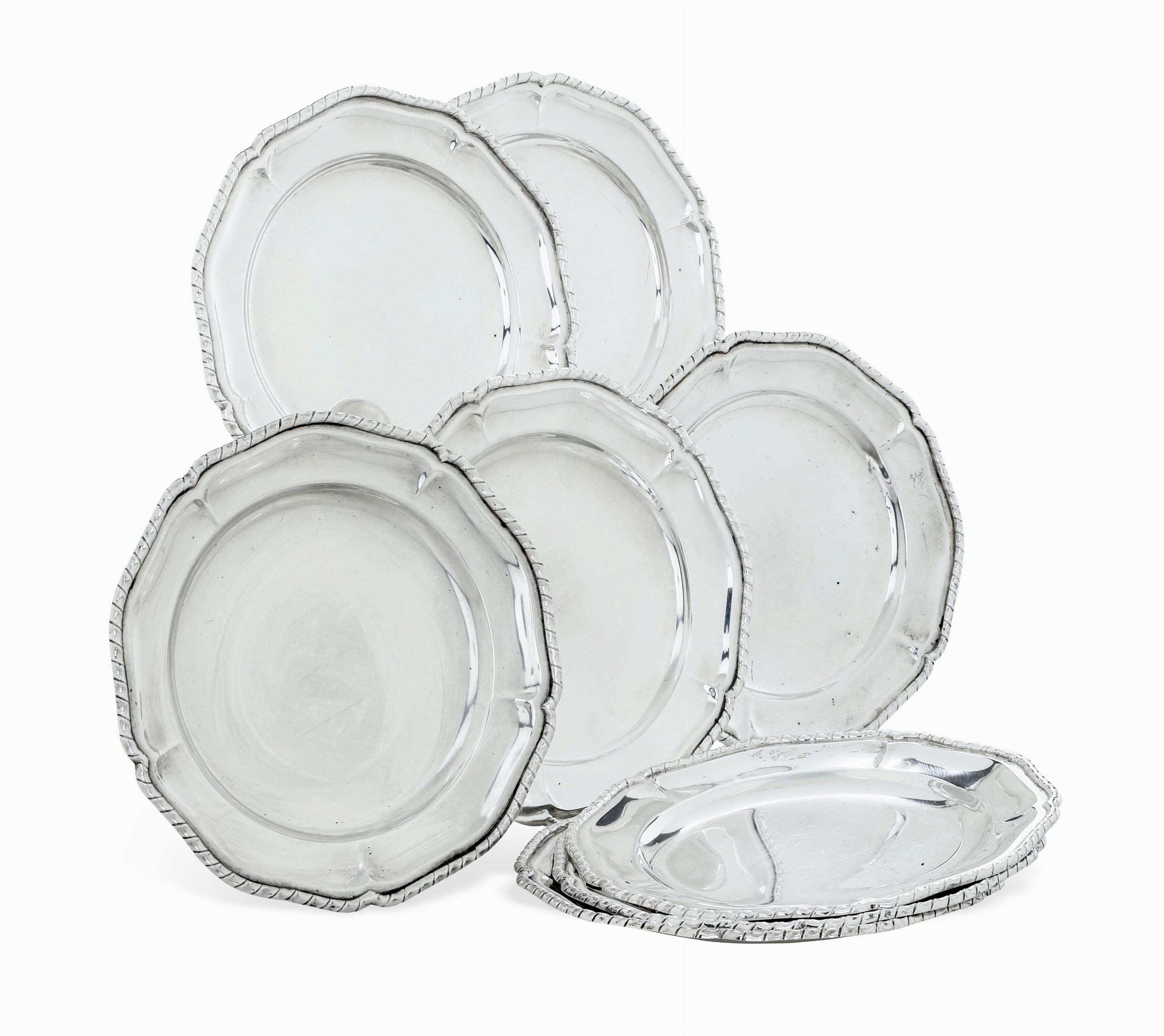 Set di otto piatti. Argenteria italiana. Marchio con fascio littorio in uso dal [..]
