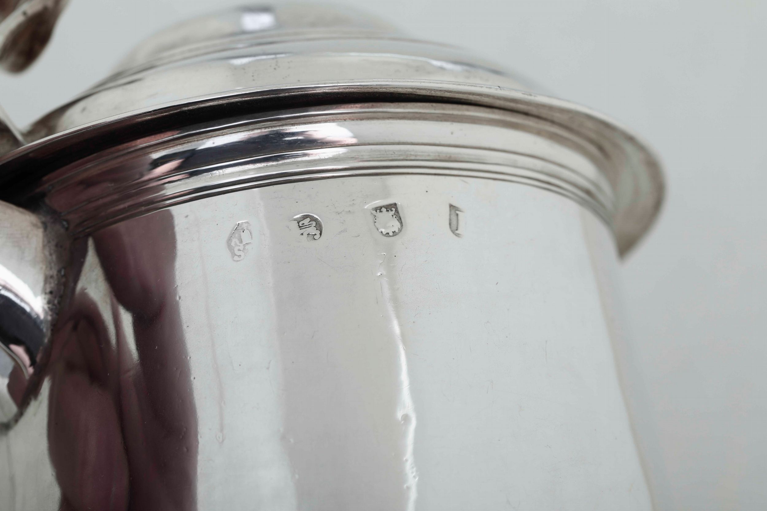 Tankard. Argento fuso e sbalzato. Londra 1724. Marchio dell’argentiere consunto [..]