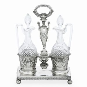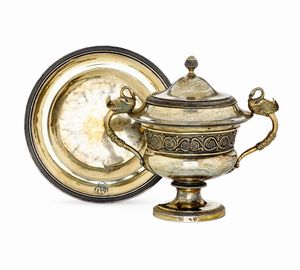 gr 560Largh. 16 - Prof. 16 - Alt. 16 Cm Decori di gusto neoclassico con girali e foglie lanceolate. Anse con figure [..]