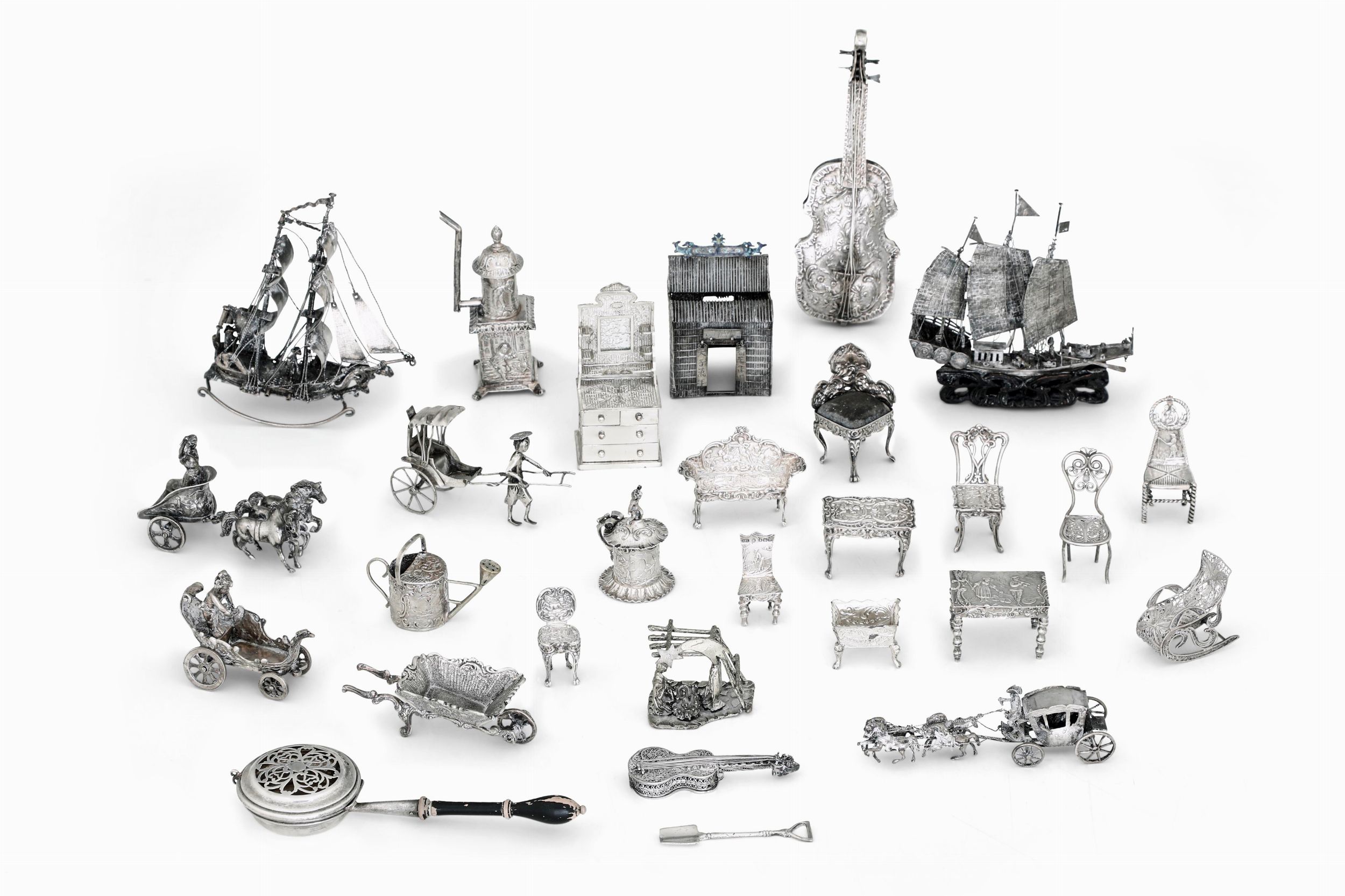 Collezione di ventinove oggetti in argento e filigrana d'argento. Differenti manifatture [..]