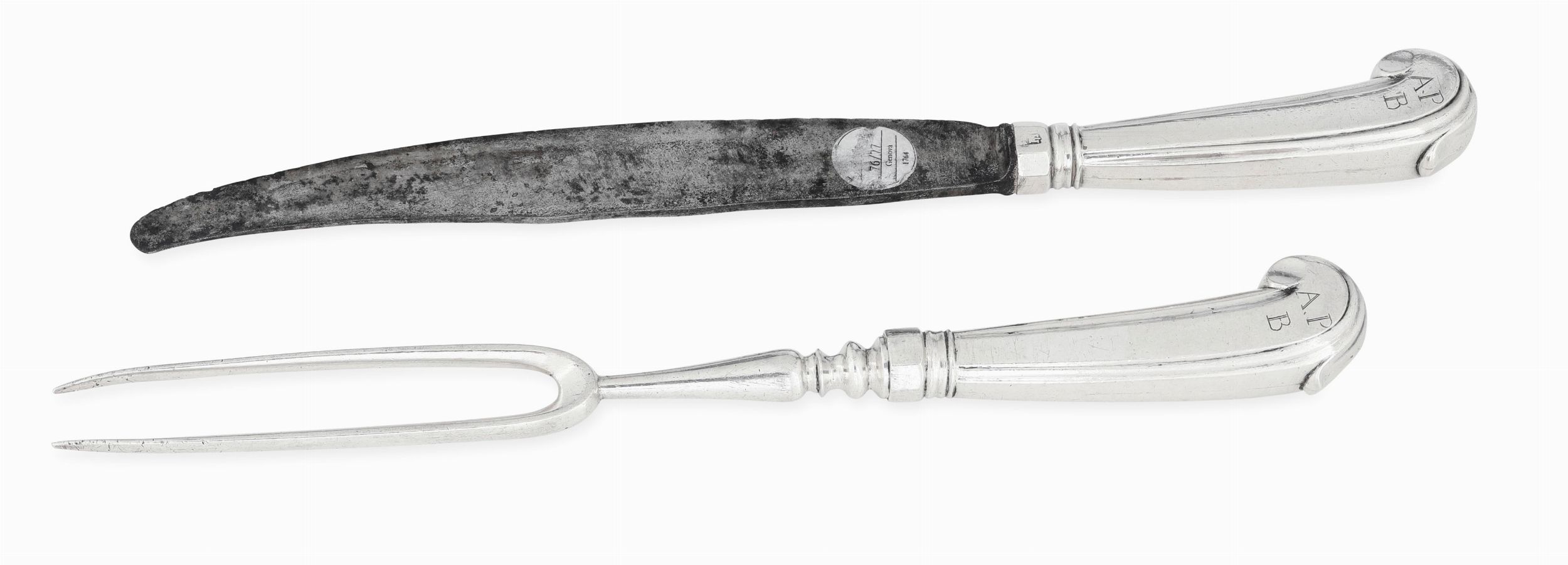 Coltello e forchettone da arrosto. Genova, XVIII secolo. Marchio della Torretta [..]