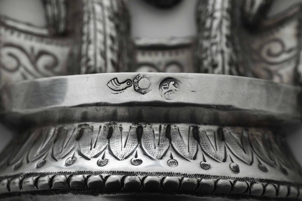 Coppia di acquasantiere a specchio. Venezia XIX secolo. Argentiere Giovanni Fantini. [..]