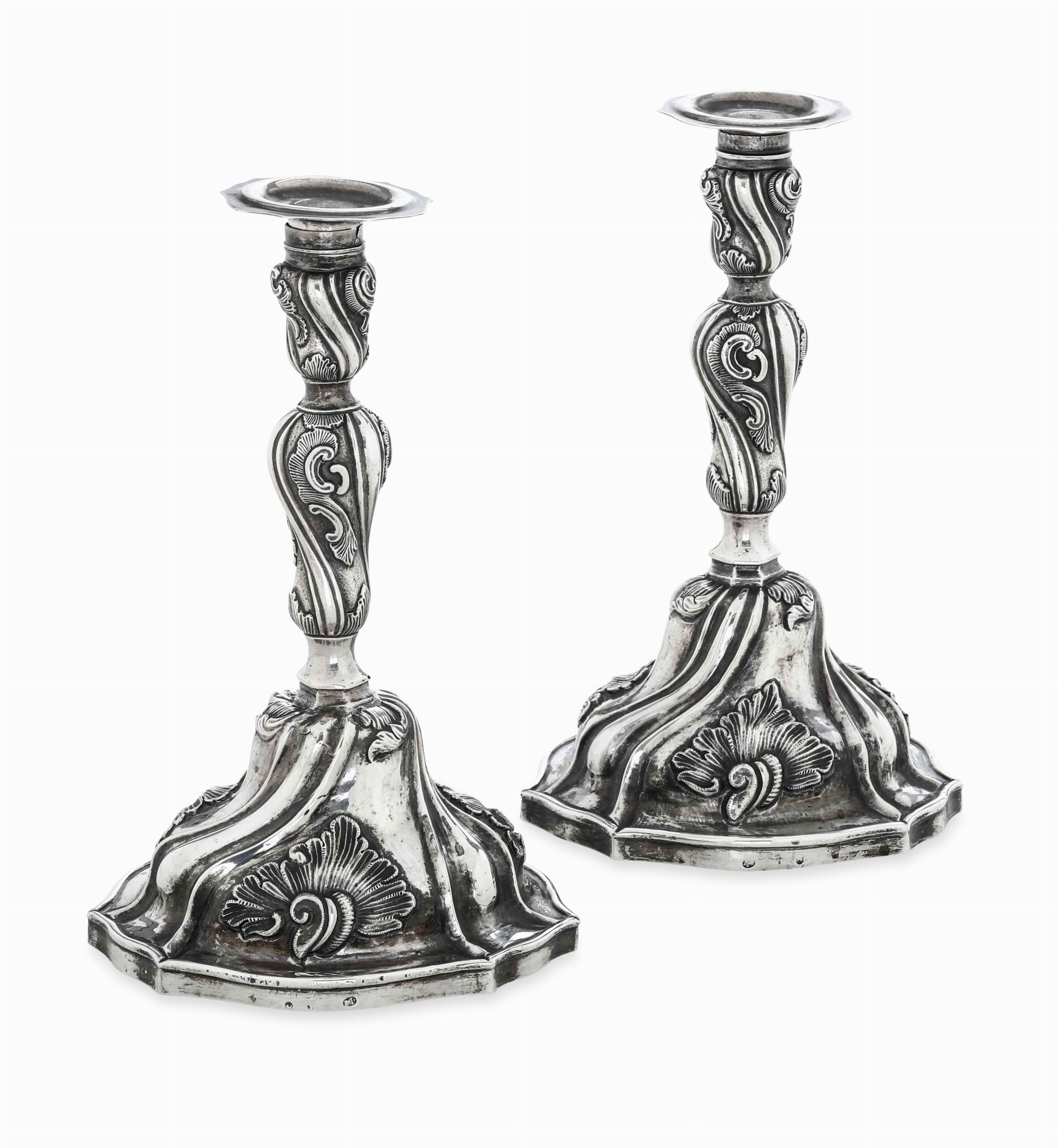 Coppia di candelieri. Genova, probabile XIX secolo. Marchio con croce mauriziana [..]