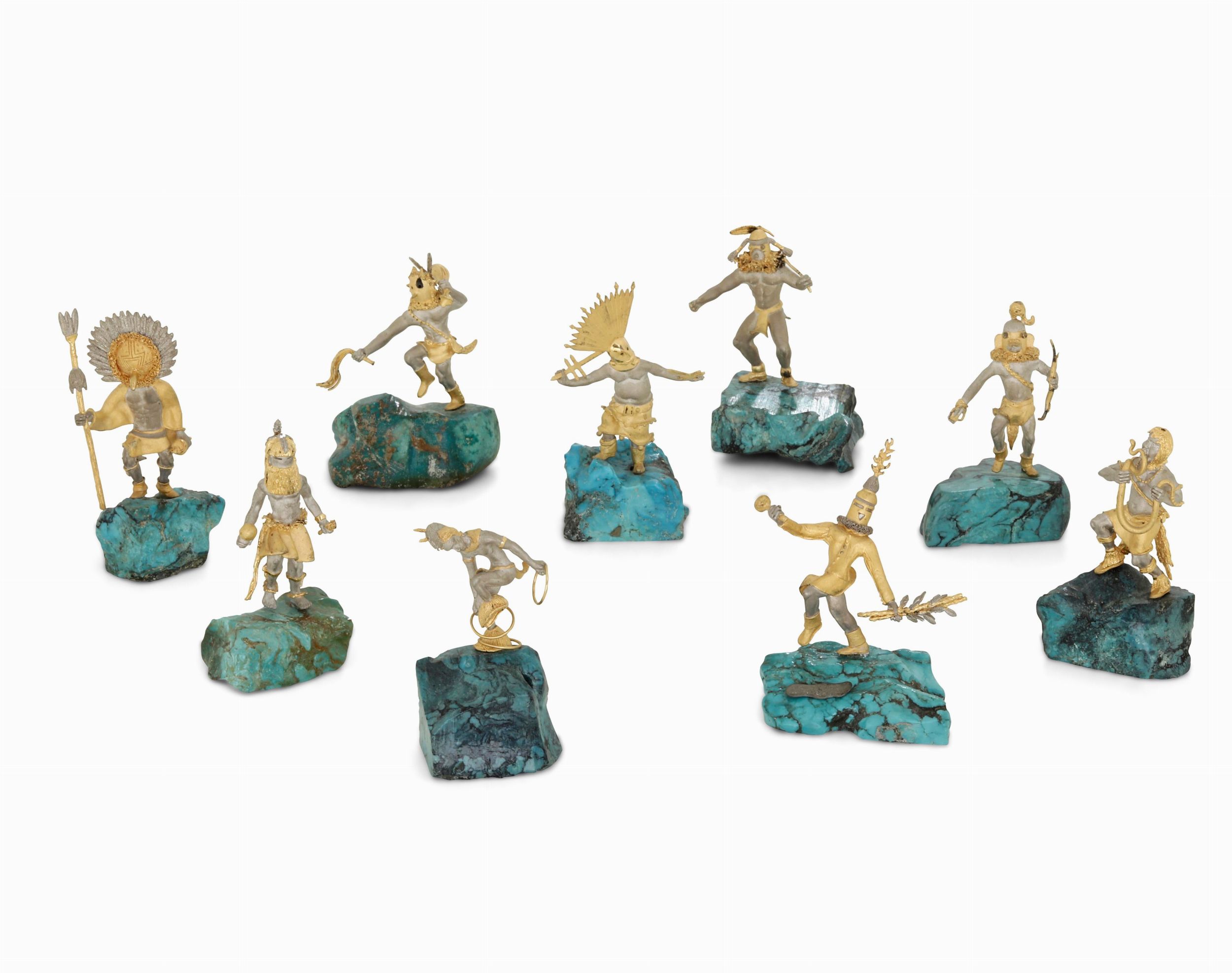 Nove figure di danzatori tribali pellerossa. Mikael Redmann, USA XXI secolo