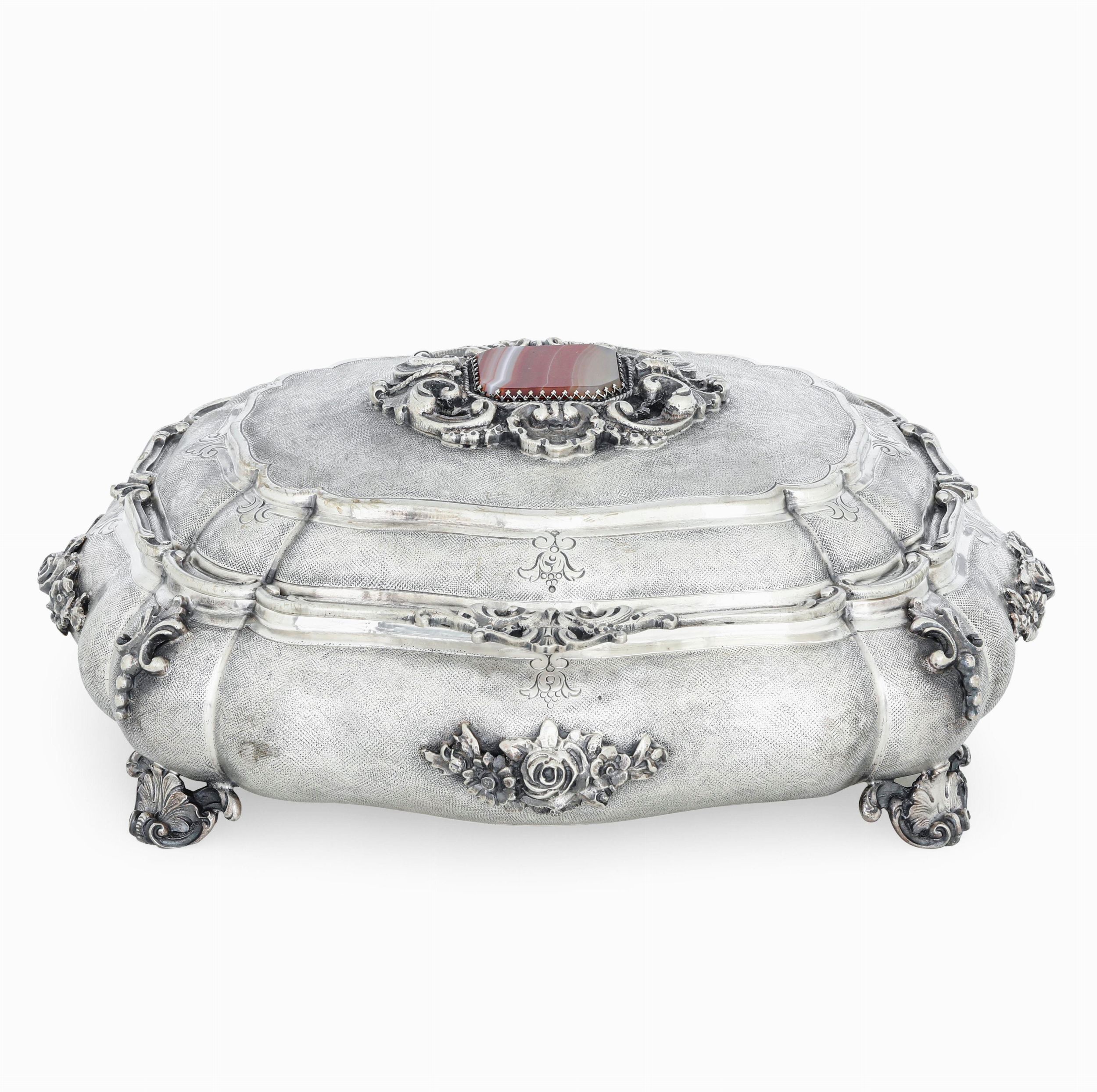 Scatola portagioie in argento fuso, sagomato e cesellato. Argenteria italiana del [..]