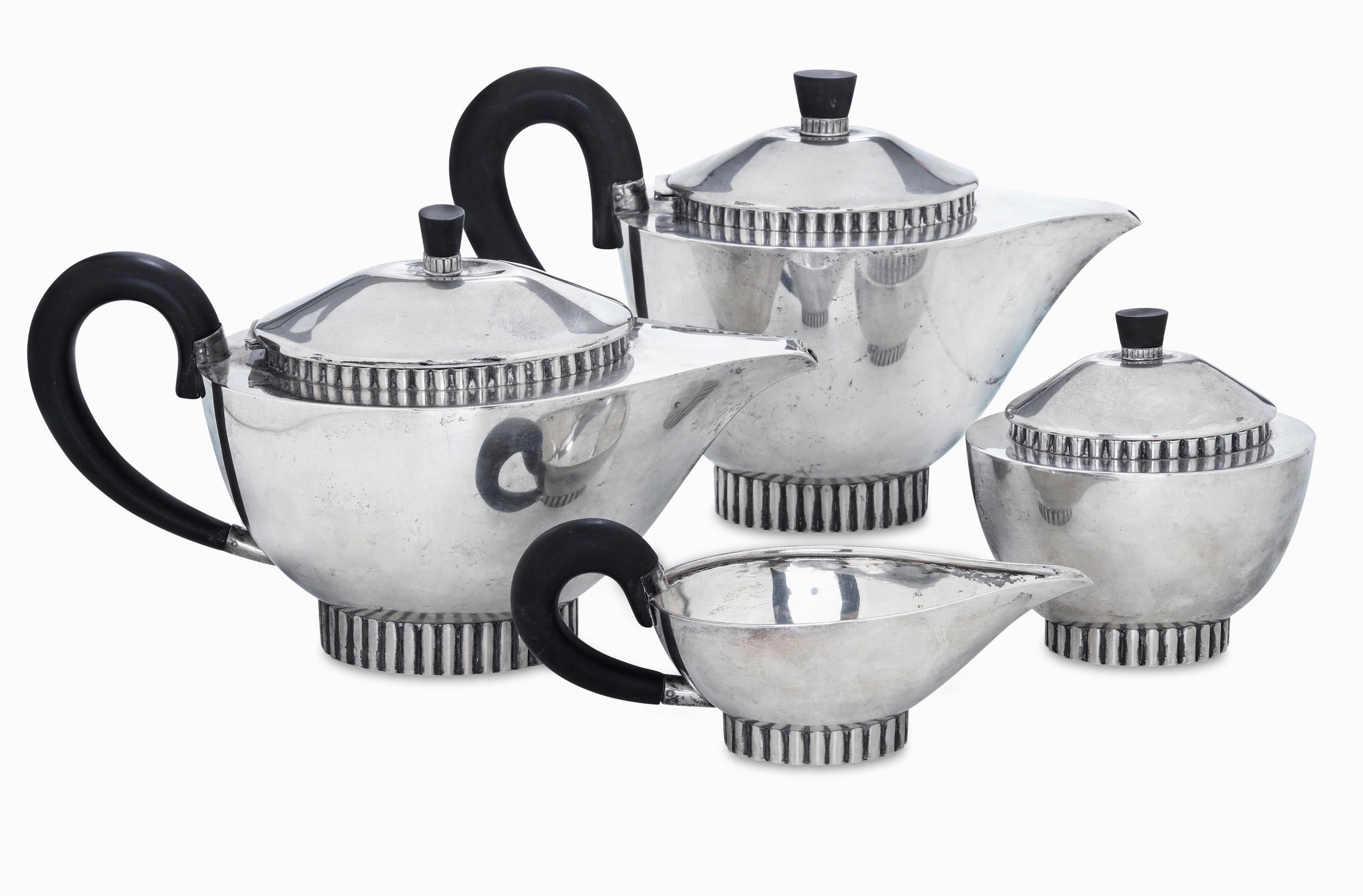 Servizio da tè-caffè decò. Argenteria artistica milanese, marchi con fascio littorio [..]
