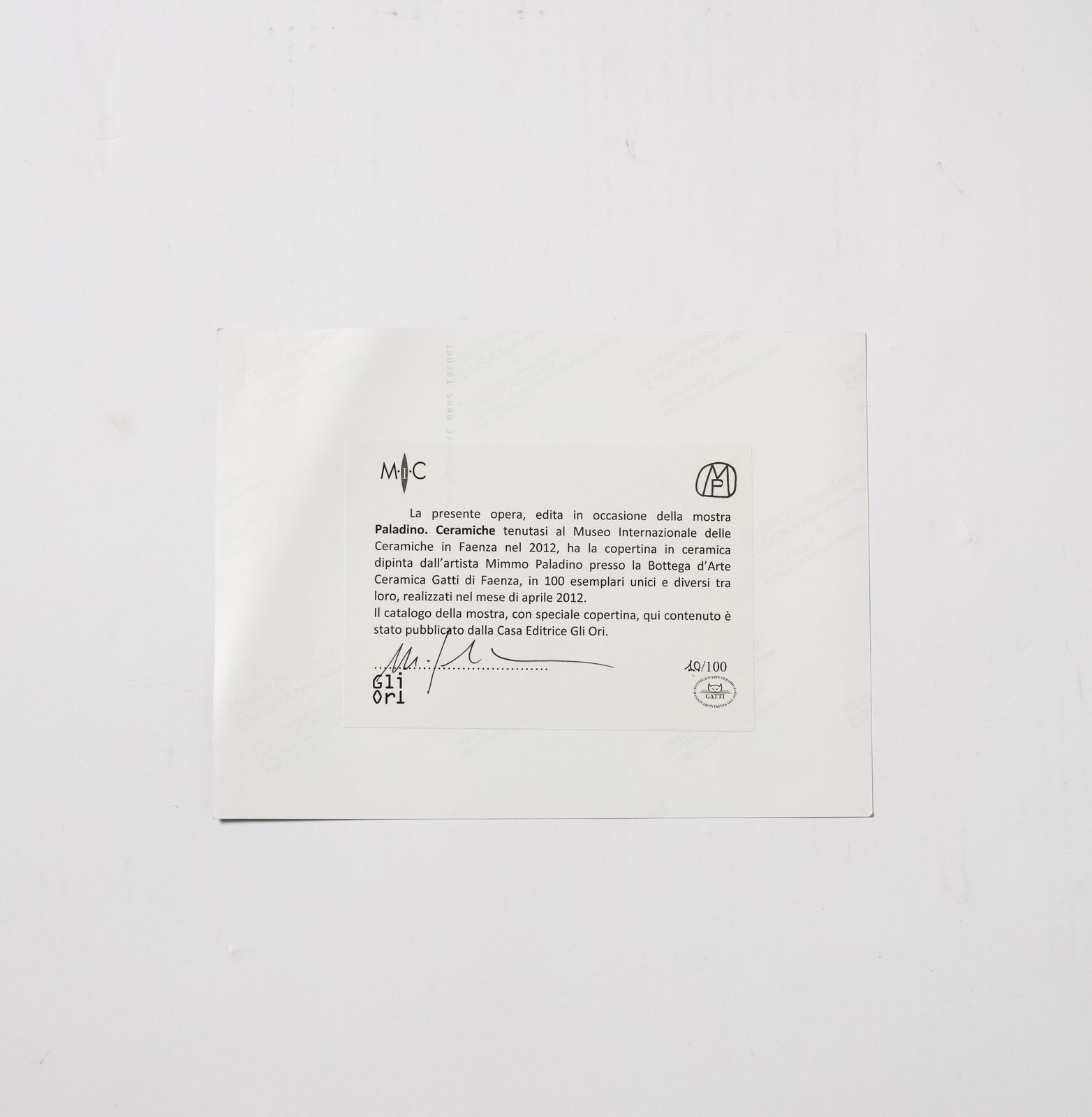 Esposizioni: MIC di Faenza, 2012.Firma dell'autore e tiratura 1/100.