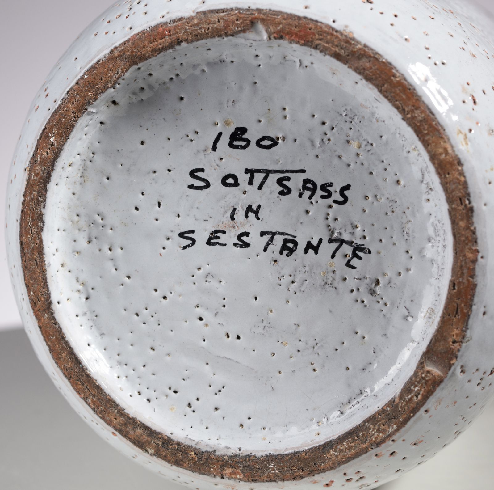 Firma alla base, riporta inoltre dicitura 180 Sottsass il Sestante. Bibliografia: F. Ferrari, Ettore Sottsass, Tutta la ceramica, Allemandi editore, 1998, p. 116