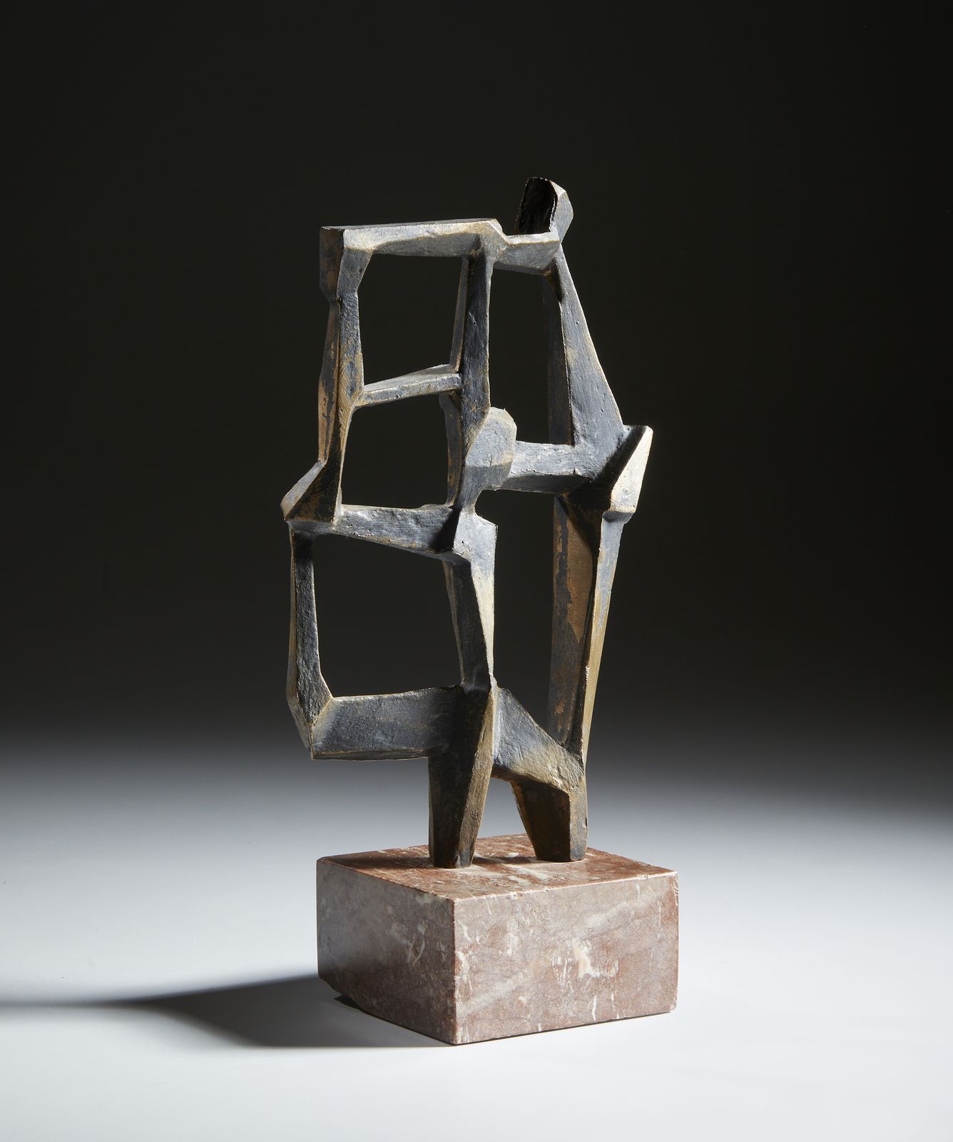 Esemplare unico. Firma non presente. Opera archiviata presso l'Archivio Pietro Consagra - Gabriella Di Lilia, Milano, come da documentazione fotografica allegata all'opera. Dimensioni con base in marmo: 42x21 cm.Esposizioni: Pietro Consagra, 21-27 Marzo 1953, Galleria del Naviglio, Milano. 2a Biennale de la Sculpture, 20 Giugno - 30 Settembre, Anversa, 1953. Pubblicazioni: 2a Biennale de la Sculpture, catalogo della mostra, testo di F. Baudouin, Anversa, Editions Esseo, n.20. Mostra di Pietro Consagra a cura di G. Carandente, catalogo unico delle mostre, Palermo, Palazzo dei Normanni: sculture. Palermo, Galleria civica d'arte moderna: pitture, disegni, grafica. Gibellina, Villaggio Rampinzieri: la città frontale, 24 febbraio-24 aprile 1973, Edizioni Nuovo Sud, Palermo, 1973, p.26, l'opera (terza da sinistra) è ripresa di sbieco nella foto della mostra a Milano, Galleria del Naviglio, Pietro Consagra, 21-27 Marzo 1953, la stessa foto è pubblicata anche in Carlo Cardazzo - Una nuova visione dell'arte a cura di L.M. Barbero, catalogo della mostra, Collezione Peggy Guggenheim, Venezia, 1 novembre 2008-9 febbraio 2009, Electa edizioni, Milano, 2008, p.180. Provenienza: Collezione privata, Agrigento.