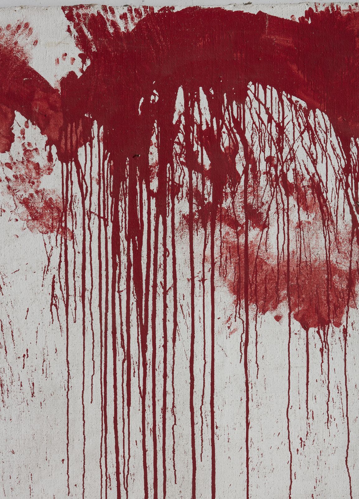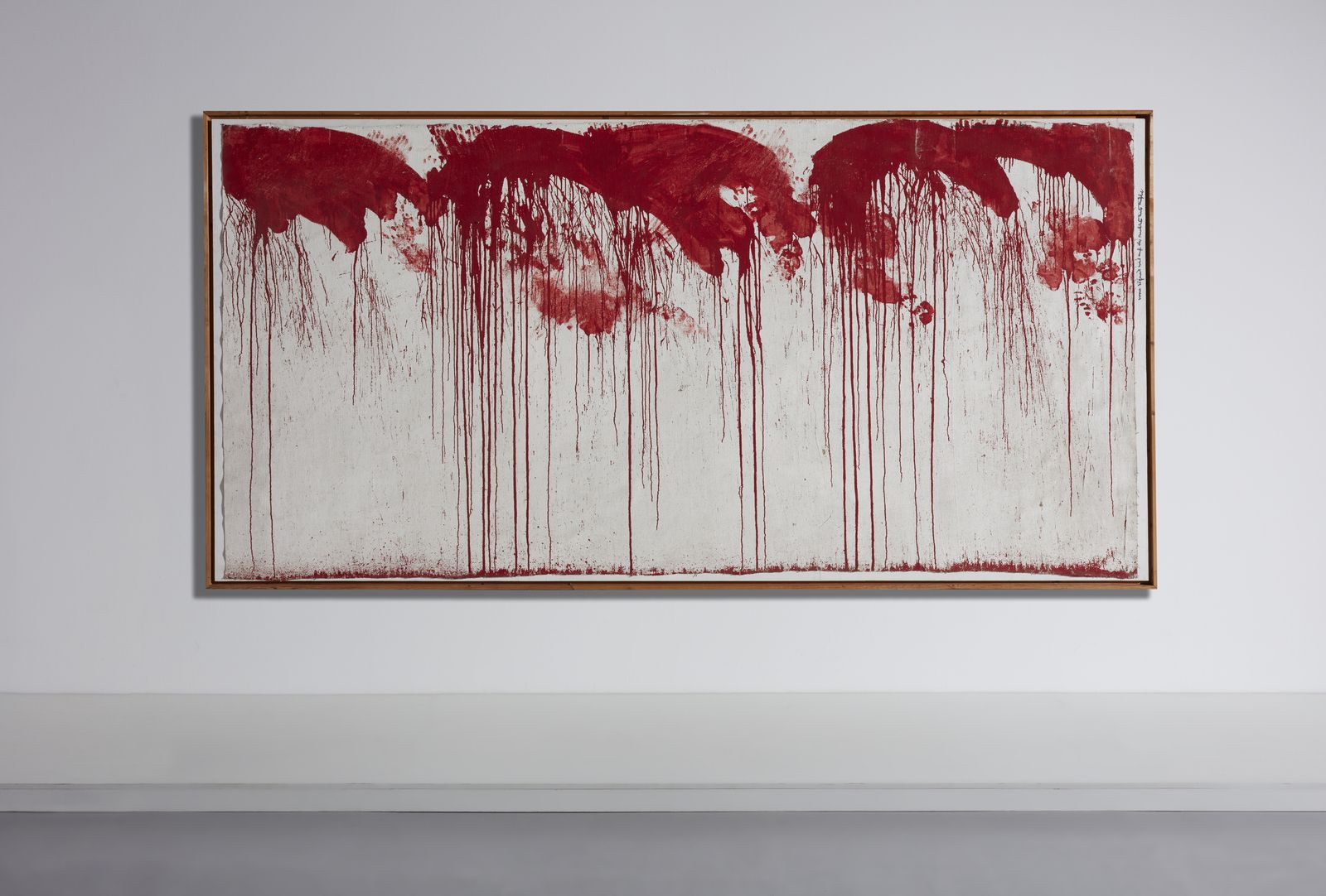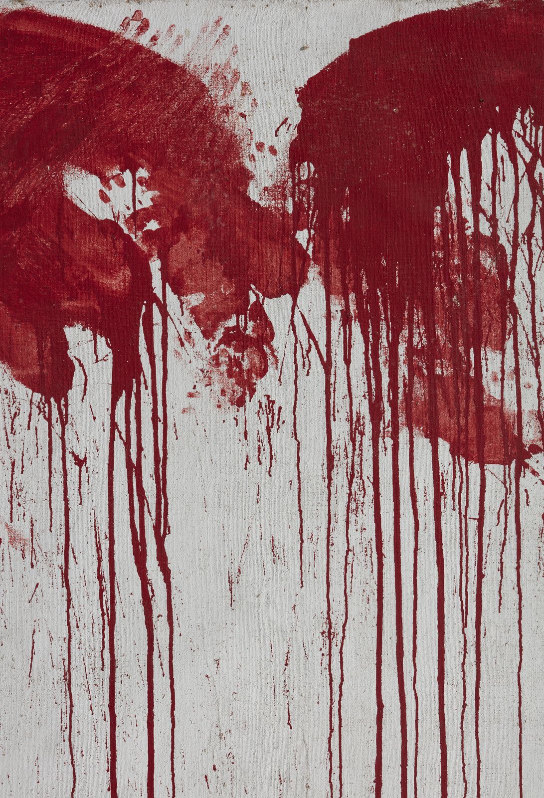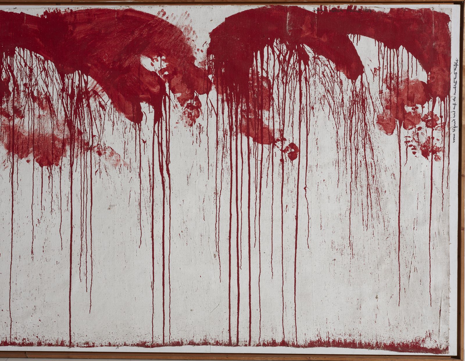 Firma e anno in alto a destra. Esposizione: Hermann Nitsch - La pittura dell' Orgien Misterien Theatre, 1984, Galleria Franz Paludetto, Torino. Opera presente nella collezione permanente della Galleria d'arte Moderna - MAMbo, Bologna fino al 2011.Pubblicazioni : Catalogo della mostra Hermann Nitsch - La pittura dell' Orgien Misterien Theatre, 1984, Galleria Franz Paludetto, Torino. Occhio al museo- Collana Arte ragazzi a cura di Cristina Francucci con dedica ad personam. Provenienza: Galleria Franz Paludetto, Torino. Collezione Catellani, Modena. Collezione privata, Modena.