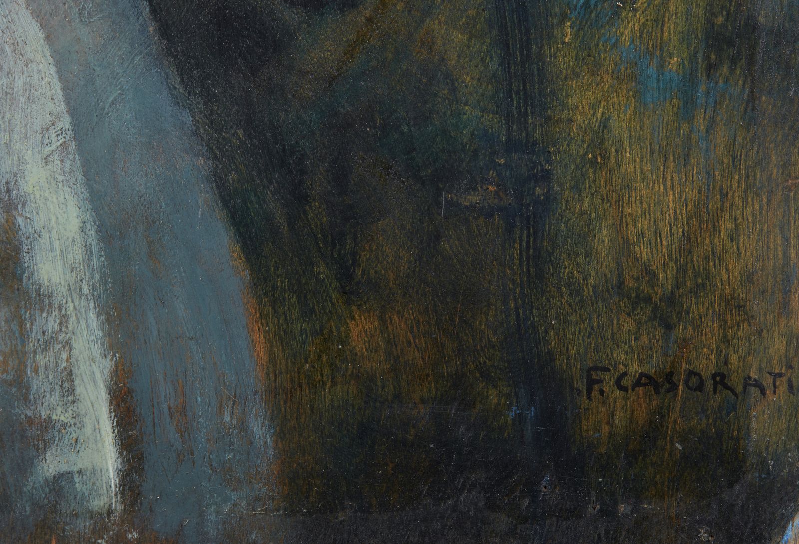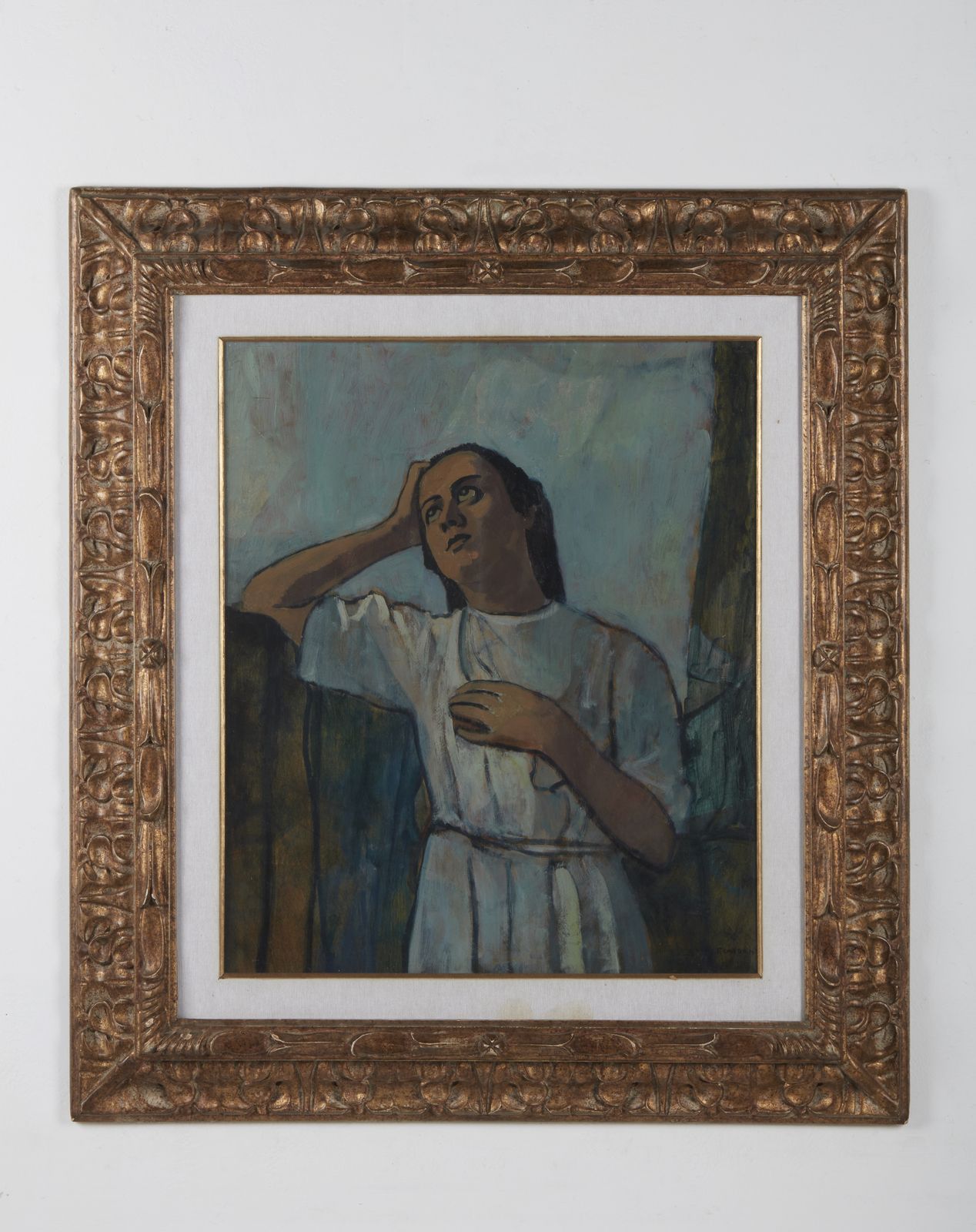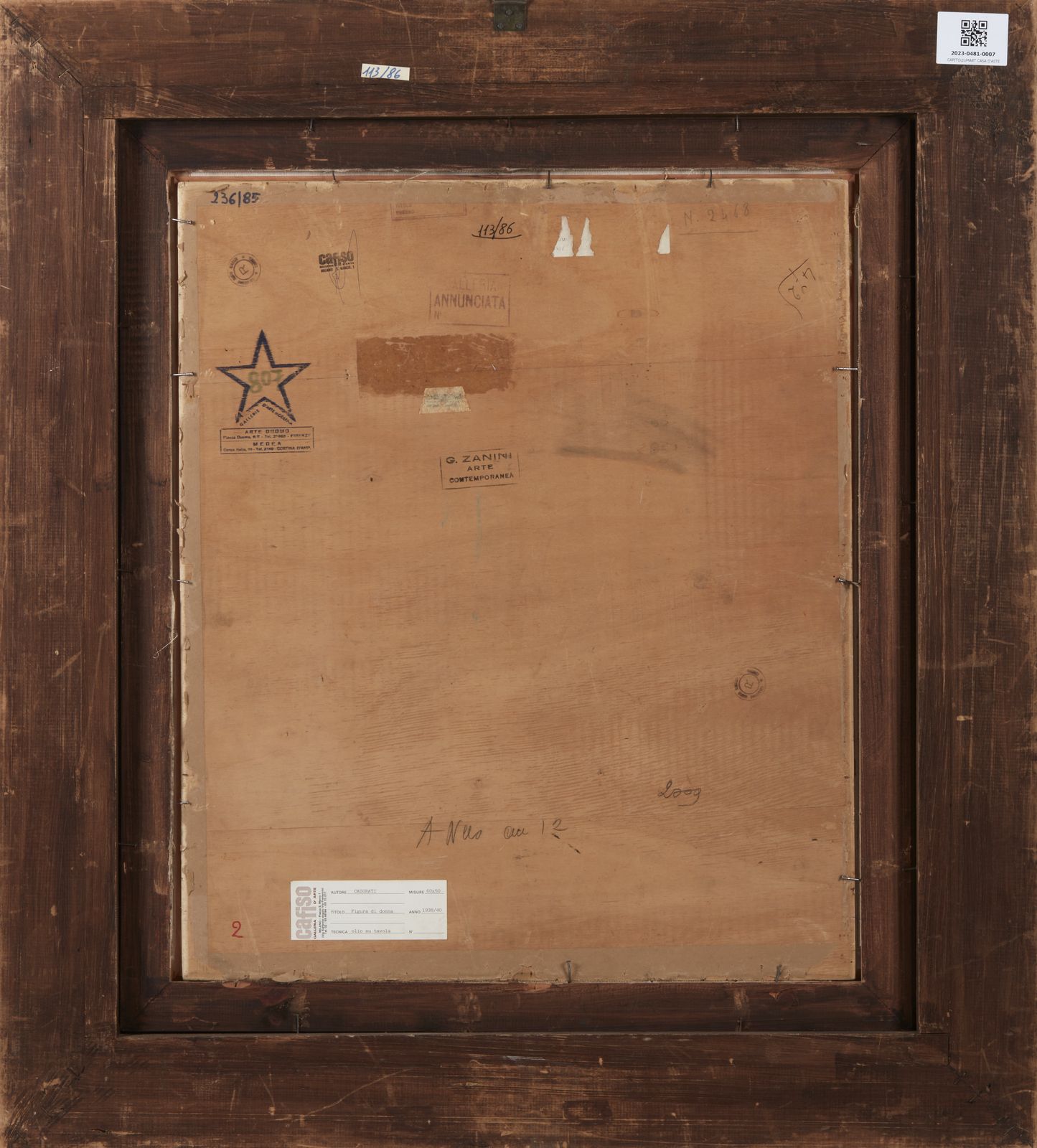 1939-1940. Firma in basso a destra. Al retro cartiglio descrittivo Galleria d'arte Cafiso, Milano. timbro G. Zanini Arte Contemporanea, Roma. timbro Galleria dell'Annunciata, Milano. timbro Galleria d'arte moderna Arte Duomo, Firenze- Cortina d'Ampezzo e timbro Collezione Mario Rimoldi, Cortina. Autentica di G. Bertasso con timbro Galleria La Bussola, Torino. Provenienza: Galleria d'arte Cafiso. G. Zanini Arte Contemporanea. Galleria dell'Annunciata, Milano. Galleria d'arte moderna Arte Duomo, Firenze- Cortina d'Ampezzo . Collezione Mario Rimoldi, Cortina. Galleria La Bussola, Torino. Collezione privata, Bologna. Pubblicazione: Catalogo generale delle opere di Felice Casorati a cura di Giorgina Bertolino e Francesco Poli, Volume II, Editore Roberto Allemandi, 1995, n.665. Lievi difetti.