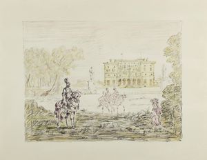 Unico esemplare acquarellato a mano da una cartella di 10 soggetti editi in 100 esemplari. Firma a matita in basso [..]