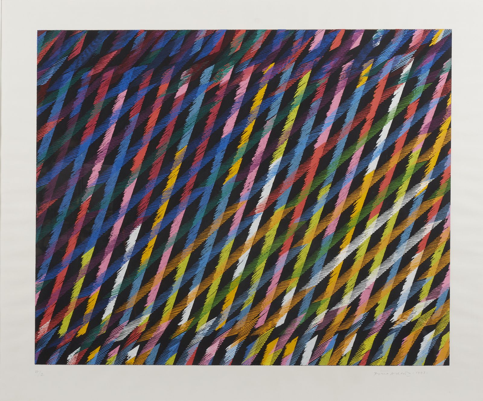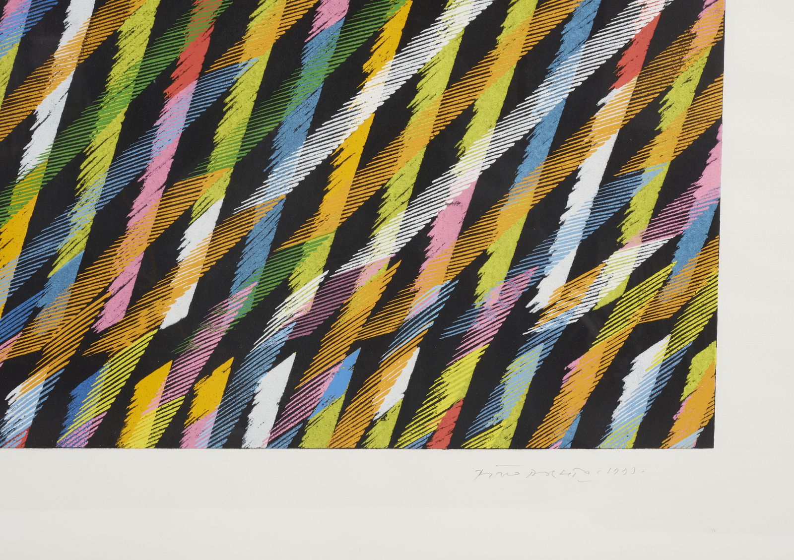 H/Z. Tiratura, firma e anno in basso a matita. Edizione totale: 200 esemplari, di cui 100 esemplari numerati da 1/100 a 100/100. 50 esemplari numerati da I/L a L/L. n° 25 lettere dell'alfabeto dalla a alla z. n° 20 p.d.a. Pubblicazione: Piero Dorazio. 10 serigrafie 1968-1992, a cura di Claudio Spadoni, Studio Idola, Forlì, tav. n°6.