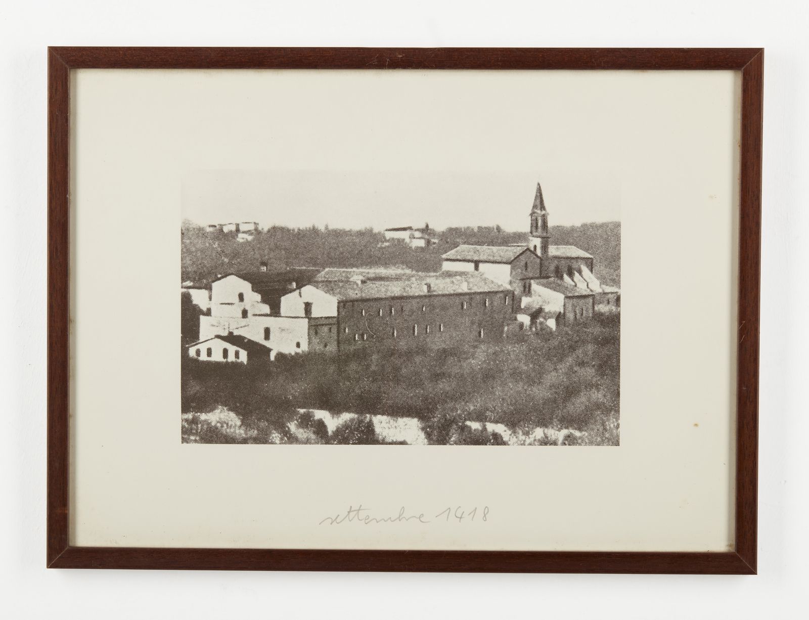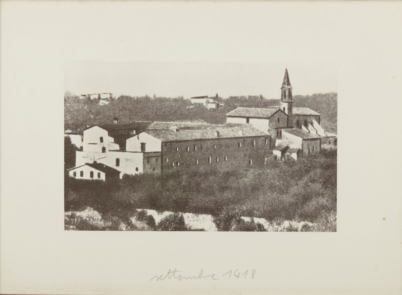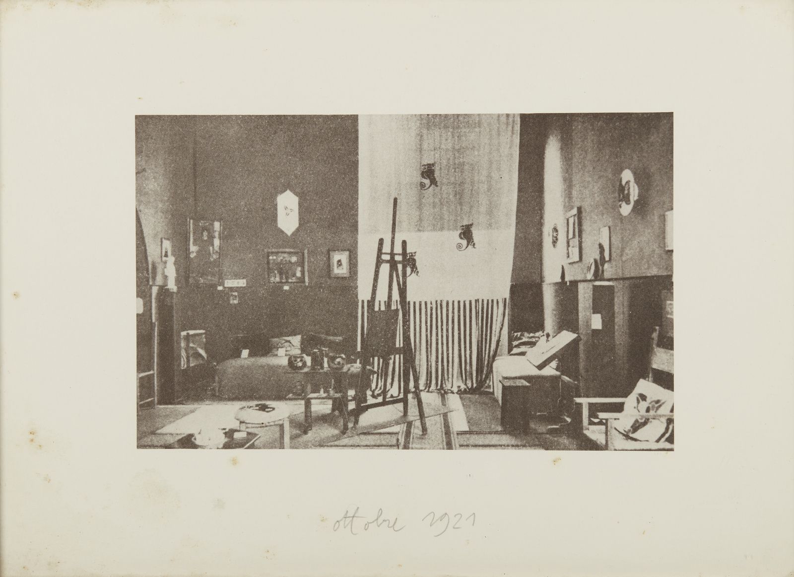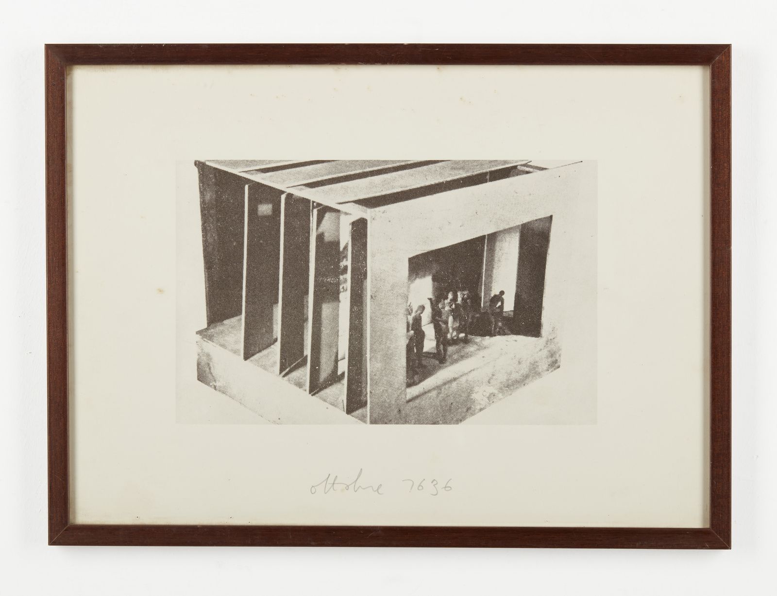 15/90. Tiratura, firma, titolo e anno a matita. Portfolio di 8 litografie, un foglio con testo dell'artista. Otto momenti e otto luoghi, scoperti sulle tracce di un viaggio imperscrutabile e irreversibile. Da Fiesole a Urbino, da Roma a Parigi, Aix en Provance e Ferrara, La Musa visita l'Angelico, Raffaello, Poussin, Ingresc, Rousseau, Cézanne e De Chirico: svanisce ad Ancona in uno studio inanimato, costruito come uno scenario ed esposto come modello in una mostra di ambienti nel 1921. ( Giulio Paolini, Colophone - Museo, 1970-1973).