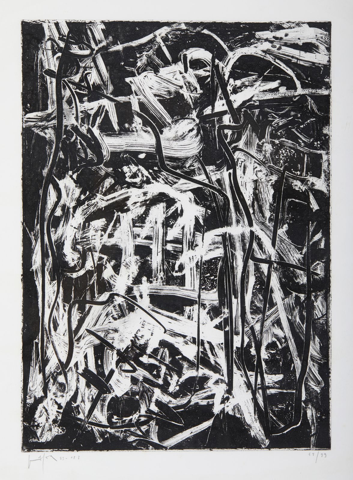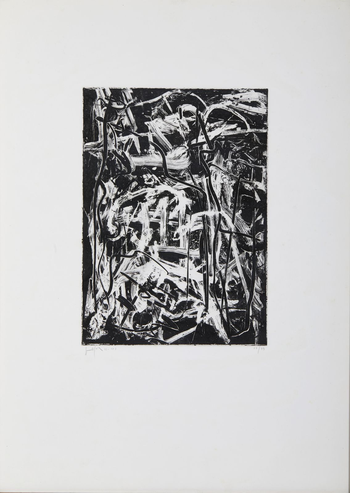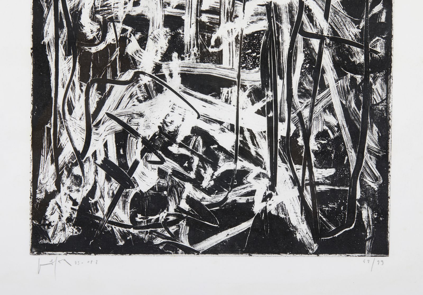 49/99. Tiratura, firma e anno in basso a matita. Dimensione lastra: 34.5x25 cm. Edizione totale: 99 +X esemplari. Carta Magnani di Pescia. Pubblicazione: Vedova Grafica 1958-90: Istituto Italiano di Cultura Vienna in collaborazione con la Graphische Sammlung Albertina Wien, aprile - maggio 1990. Lievi difetti.