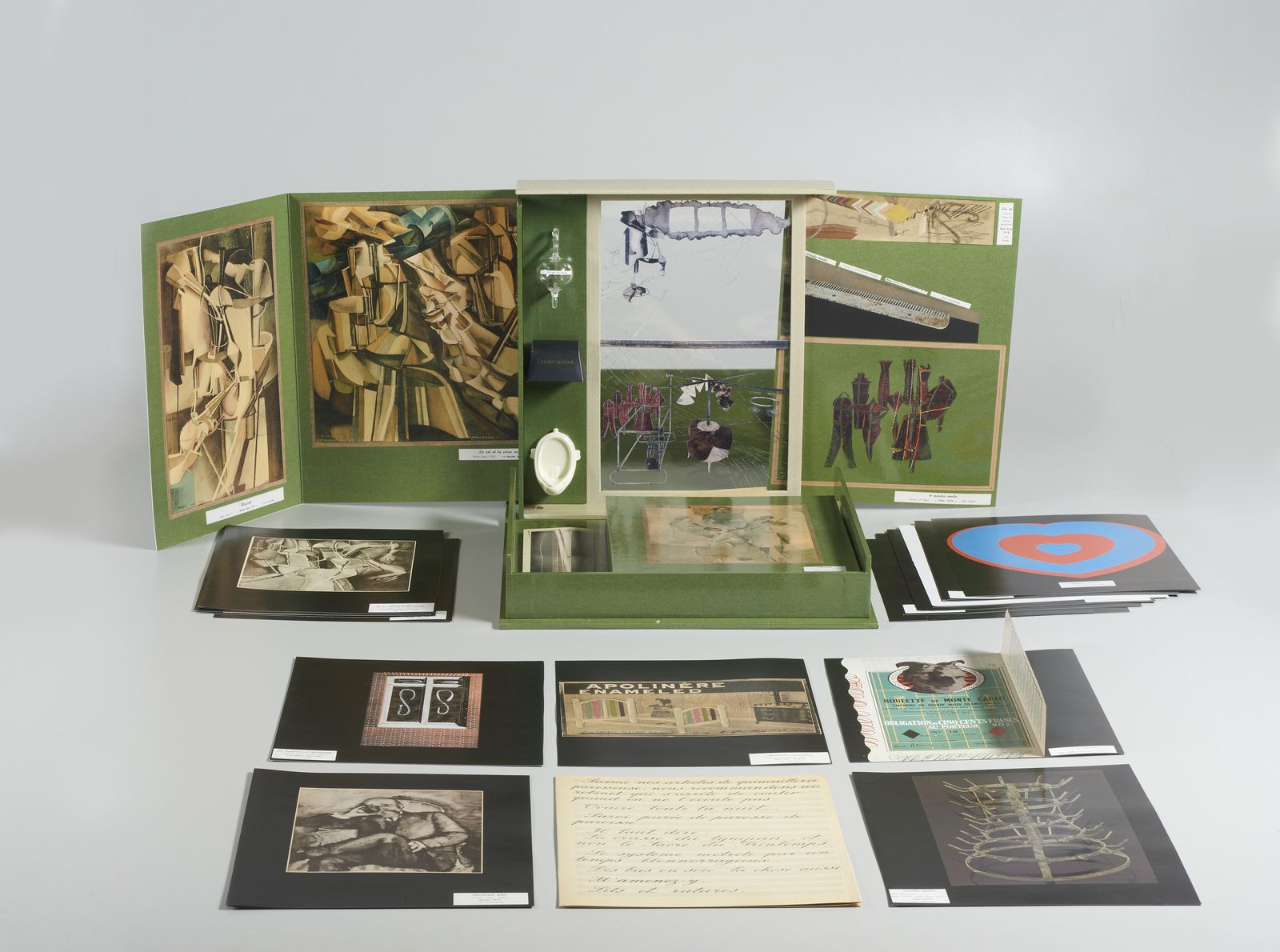 Facsimile dell'Edizione serie G 1968 + diapositiva con Mulino ad Acqua. Progettato e edito da Mathieu Mercier, supervisione dell'Associazione Marcel Duchamp. Pubblicato da Verlag der Buchhandlung Walther König, Köln.Dimensioni da aperta: 37x37x83 cm. 'Tutto ciò che di importante ho fatto può essere messo in una piccola valigia', ( Duchamp,1952).Uno dei pezzi più importanti ed enigmatici dell'arte moderna, 'Boîte-en-valise' è stato assemblato da Marcel Duchamp tra il 1935 e il 1941. La valigia portatile contiene 'la somma del suo lavoro artistico' proprio fino a quella data ( edizione totale in 300 copie).Questa è la prima reinterpretazione dell'iconico oggetto-libro, concettualizzato dall'artista francese Mathieu Mercier .Un'opera in pieno spirito duchampiano: questo museo in miniatura contiene 69 riproduzioni delle creazioni più celebri di Duchamp.