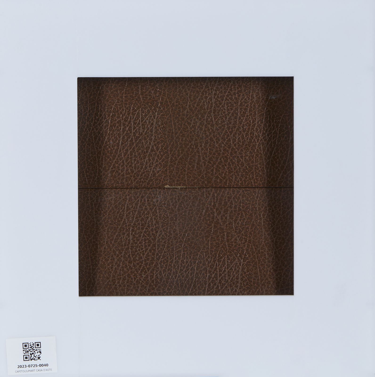 44/90. Tiratura e firma in basso a sinistra a pennarello. Serigrafia su pelle Skivertex. Editore: Philadelphia Museum of Art. Edizione totale: 90 esemplari. Entro teca in plexiglass. Dimensioni teca: 40.5x40.5x3.8 cm.