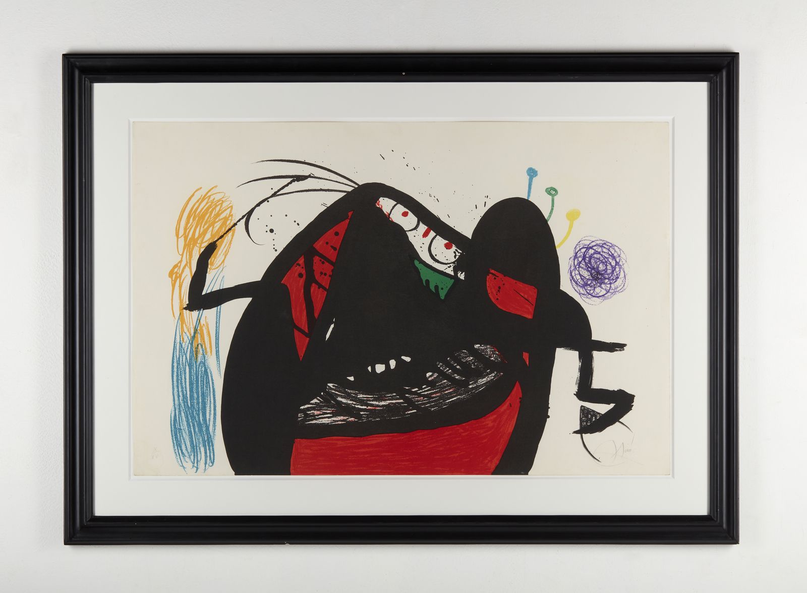 X/XV. Tiratura e firma in basso a matita. Edizione totale: 50 esemplari numerati da 1/50 a 50/50. 15 esemplari numerati da I/XV a XV/XV + H.C. Maeght Éditeur, Parigi. Carta Velin d'Arches. Pubblicazione: Joan Miró Lithographe, VI, 1976-1981. Catalogue établi par Patrick Cramer, Maeght Éditeur, Paris, n.1084. Lievi difetti.
