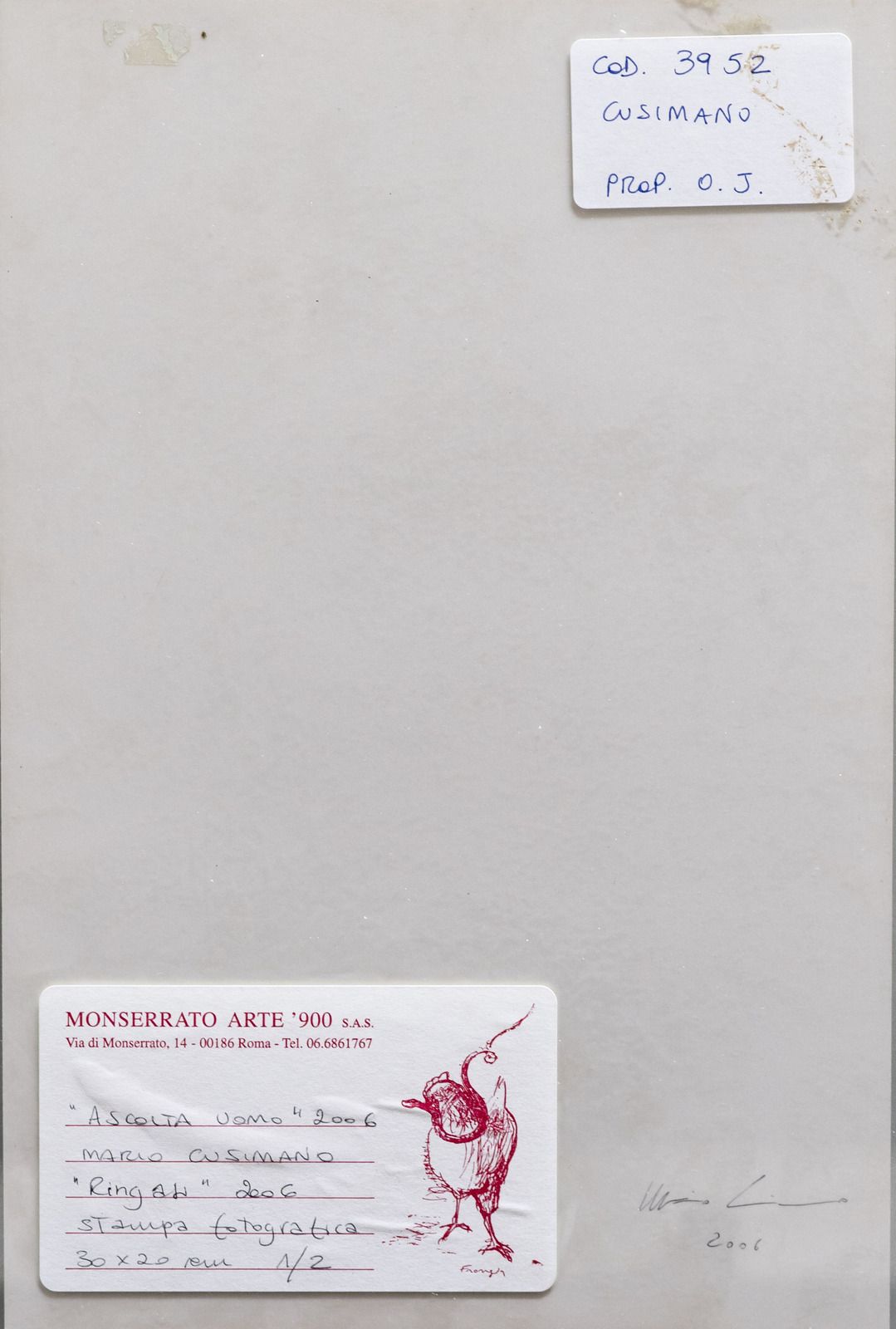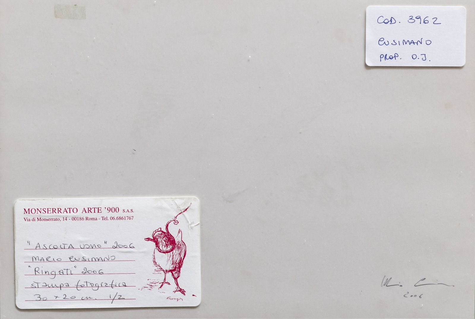 1/2. Al retro ogni fotografia presenta firma, anno e cartiglio descrittivo Galleria Monserrato Arte, Roma. Pubblicazione: Istinti ragionati, fotografie e sensazioni di Mario Cusimano e Claudio Laurenti. Provenienza: Galleria Monserrato Arte, Roma. Collezione privata, Roma.