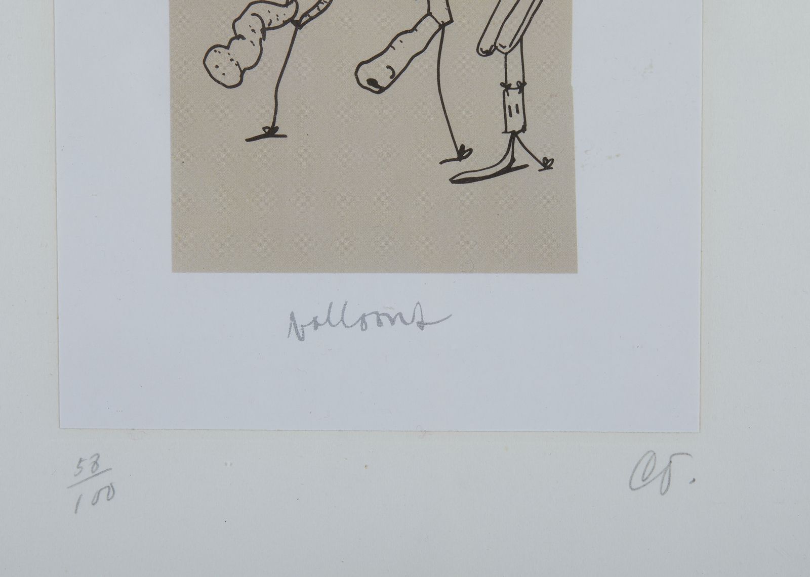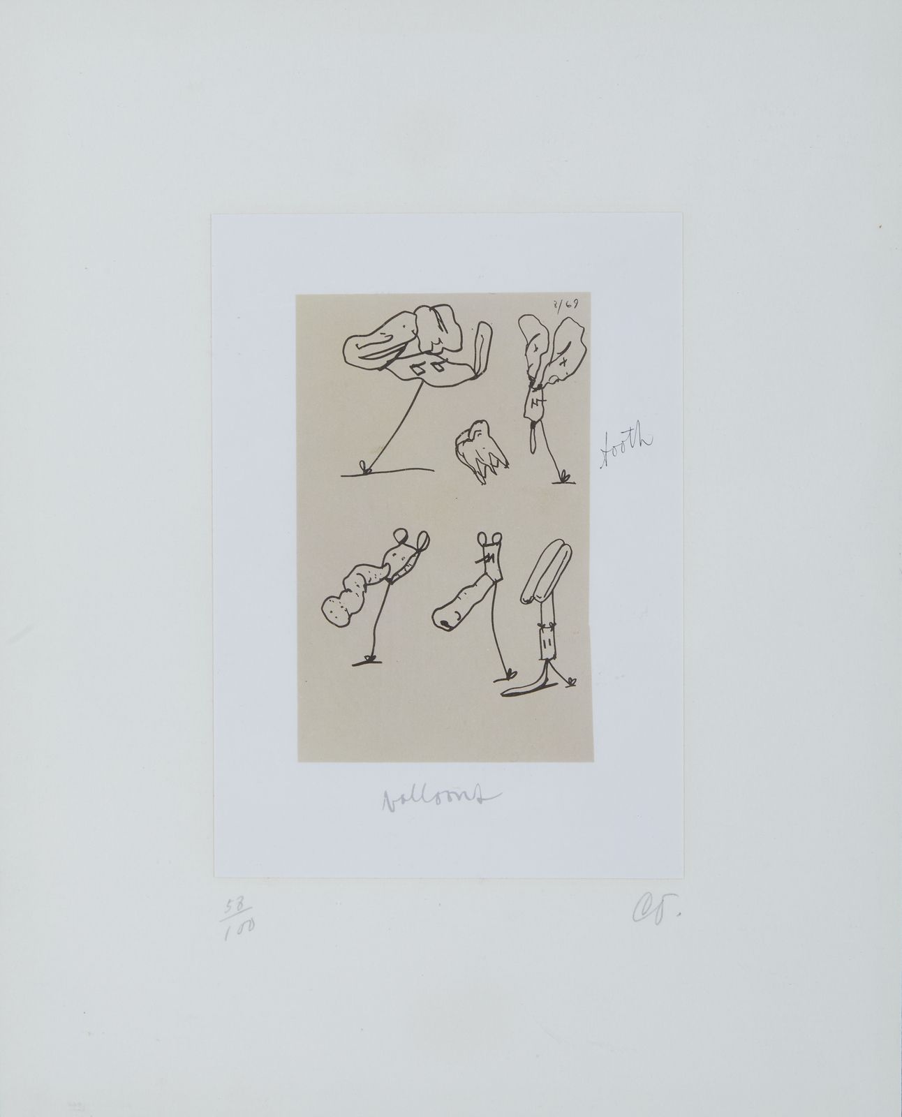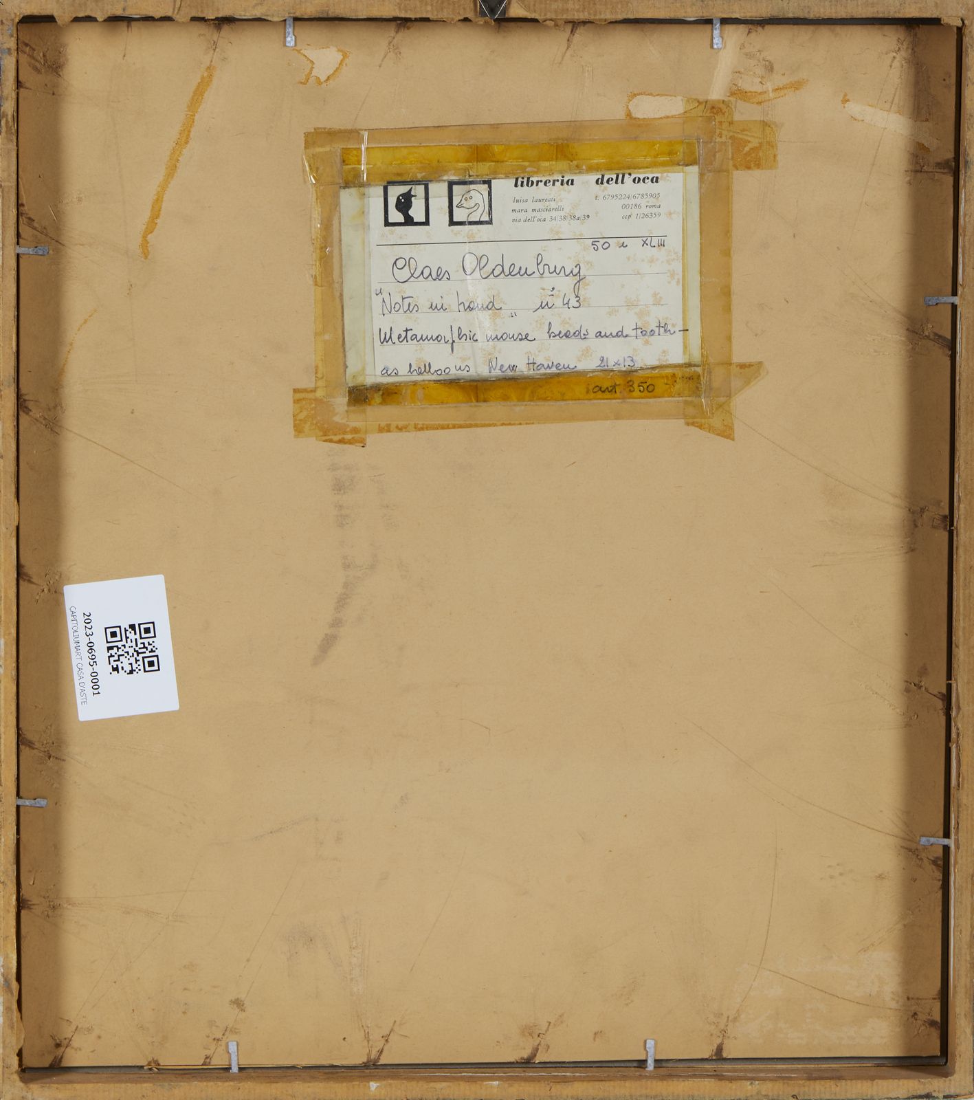 58/100. Tiratura e firma in basso a matita. Titolo in basso al centro a stampa. Al retro cartiglio descrittivo Libreria dell'Oca, Roma. Pubblicazione: R. H. Axsom and D. Platzker, 'Printed Stuff. Prints, Posters and Ephemera by Claes Oldenburg. A Catalogue Raisonné 1958-1996', 1997, Hudson Hills Press, New York.