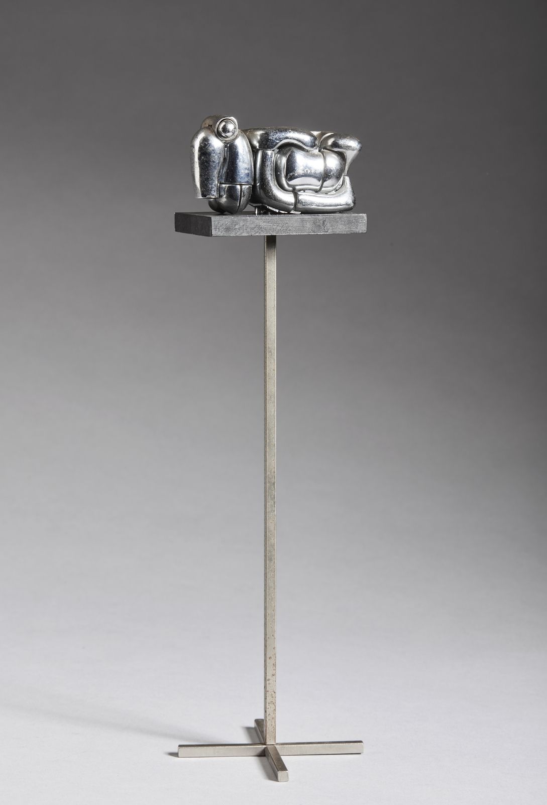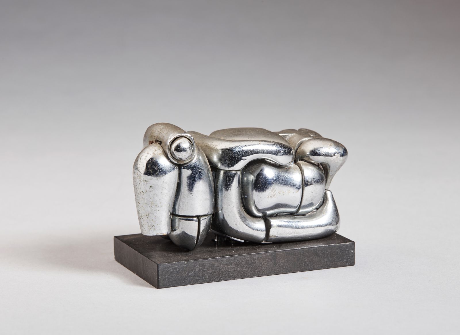 1968-1969. N.2831.Tiratura e firma incise sotto la base. Scultura smontabile in 23 elementi. Edizione totale composta da 6 esemplari in oro fino fusi in cera persa numerati e firmati da I a VI. 500 esemplari in argento massiccio fusi a cera persa, firmati e numerati da 1 a 500 e 9500 esemplari fusi a iniezione in metallo nichelato, firmati e numerati da 501 a 10.000. Dimensioni con supporto metallico 29,5x8,5x8,5cm. Lievi difetti.