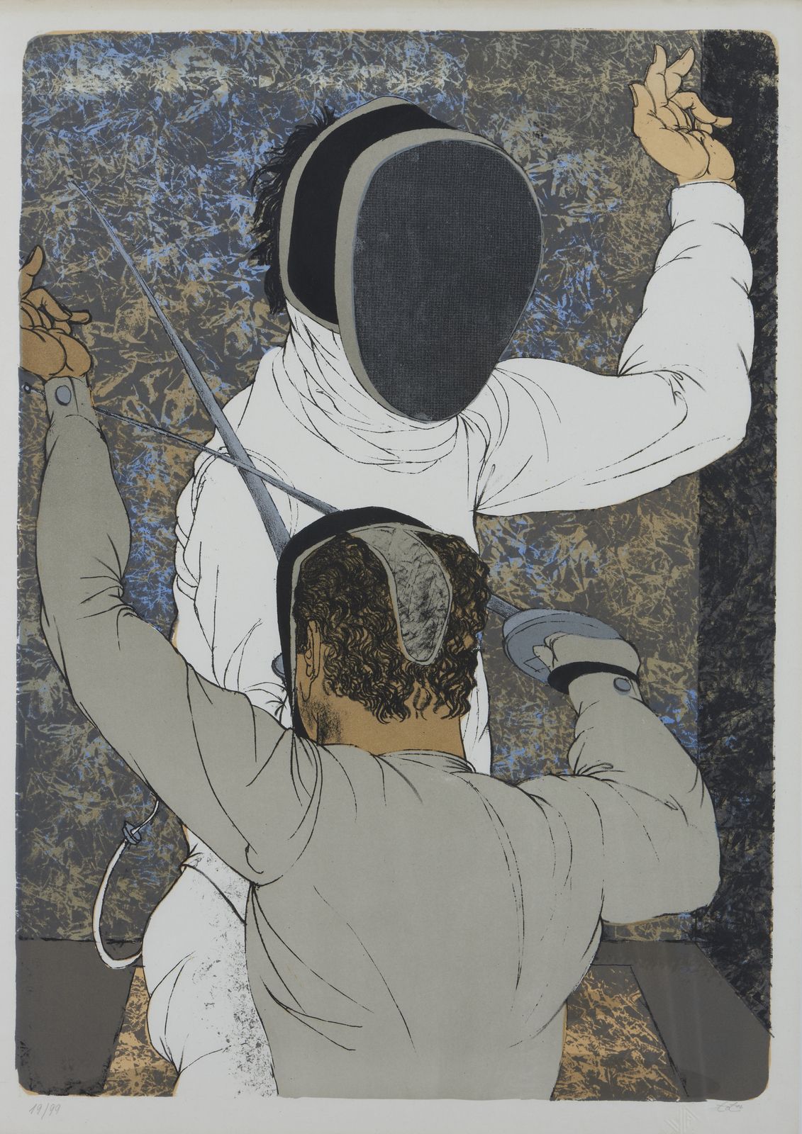 19/99. Tiratura, firma e anno in basso a matita. Edizione totale: 99 esemplari + p.a. Timbro a secco in basso a destra. Lievi difetti.
