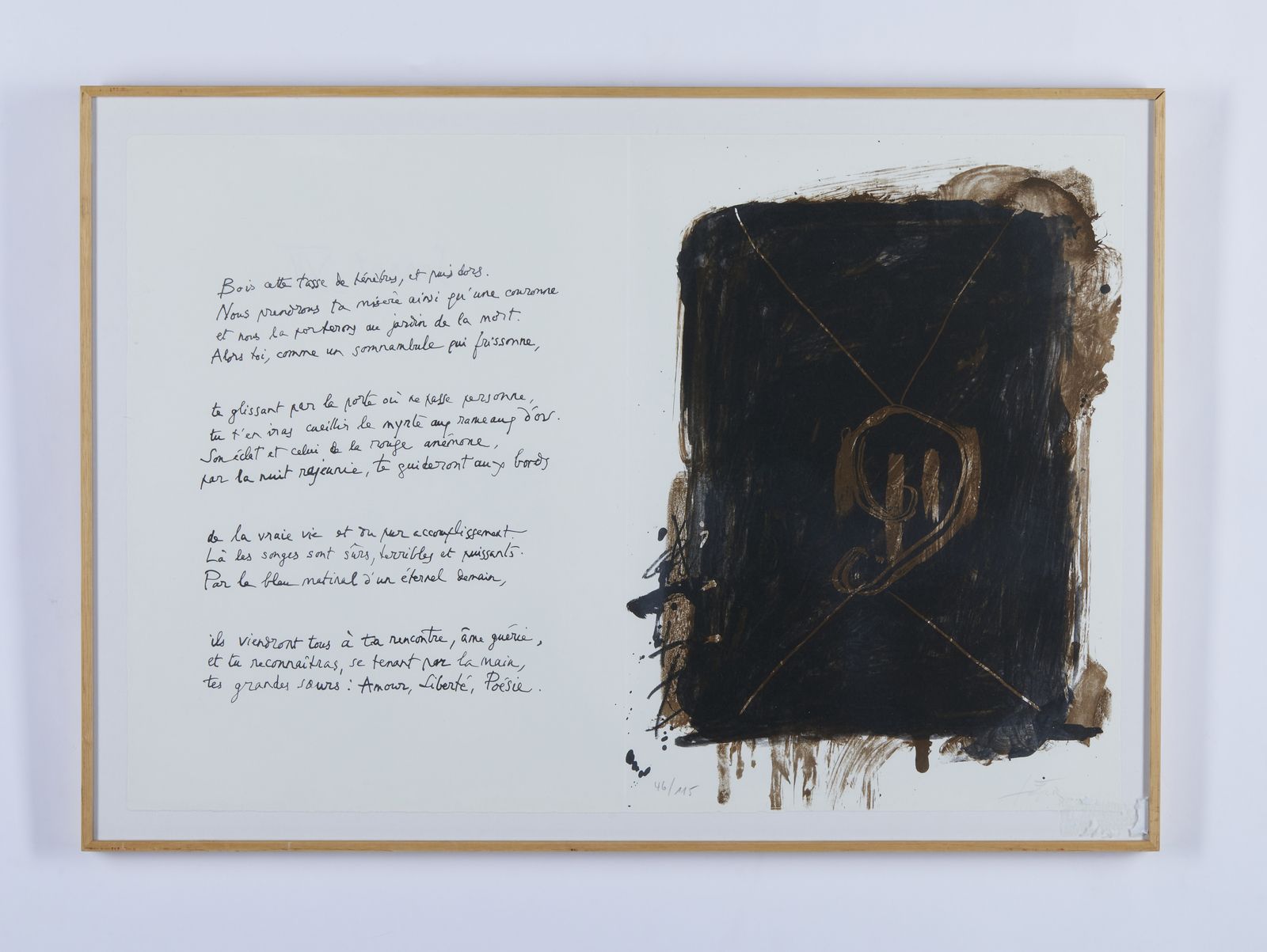 46/115. Tiratura e firma in basso a destra a matita. Carta BFK Rives. Editore e stampatore Erker-Presse, St-Gallen. Pubblicazioni: Antoni Tŕpies. Catalogo dell'opera grafica, a cura di Mariuccia Galfetti, Erker Presse, St. Gallen, n. 175.