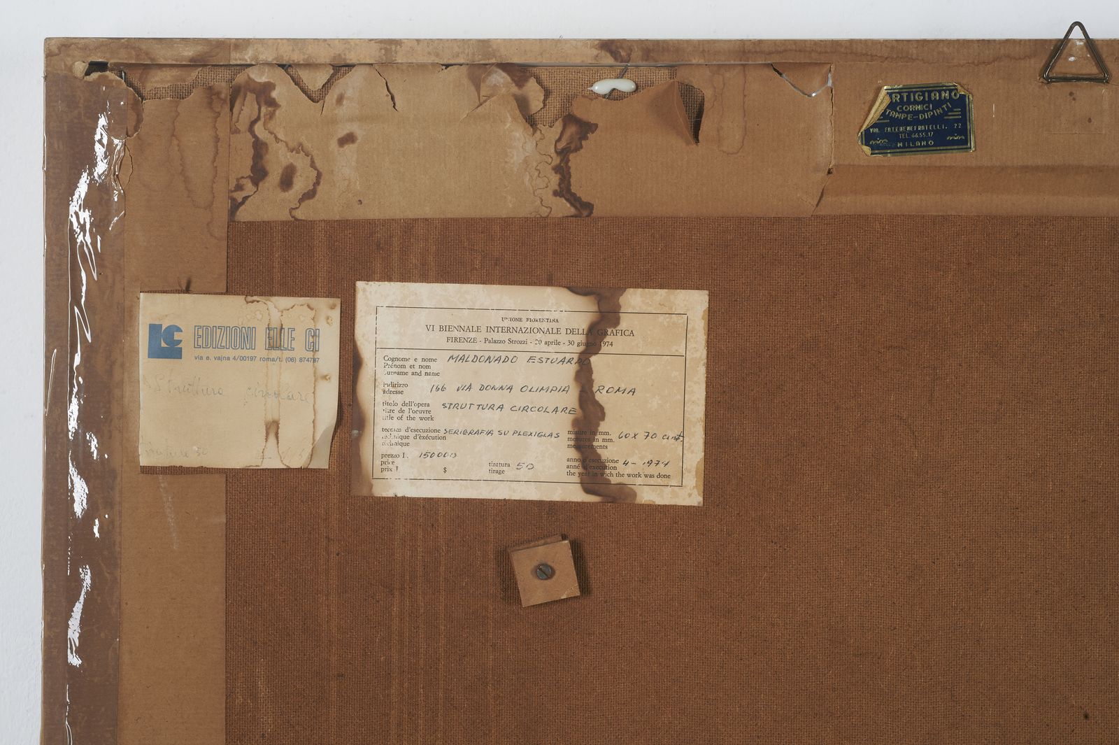 Al retro cartiglio descrittivo VI Biennale Internazionale della Grafica, Palazzo Strozzi e Edizioni Elle Ci, Roma. Edizione totale: 50 esemplari. Esposizioni: VI Biennale Internazionale della Grafica, Palazzo Strozzi, 20 aprile-30 giugno 1974. Lievi difetti.