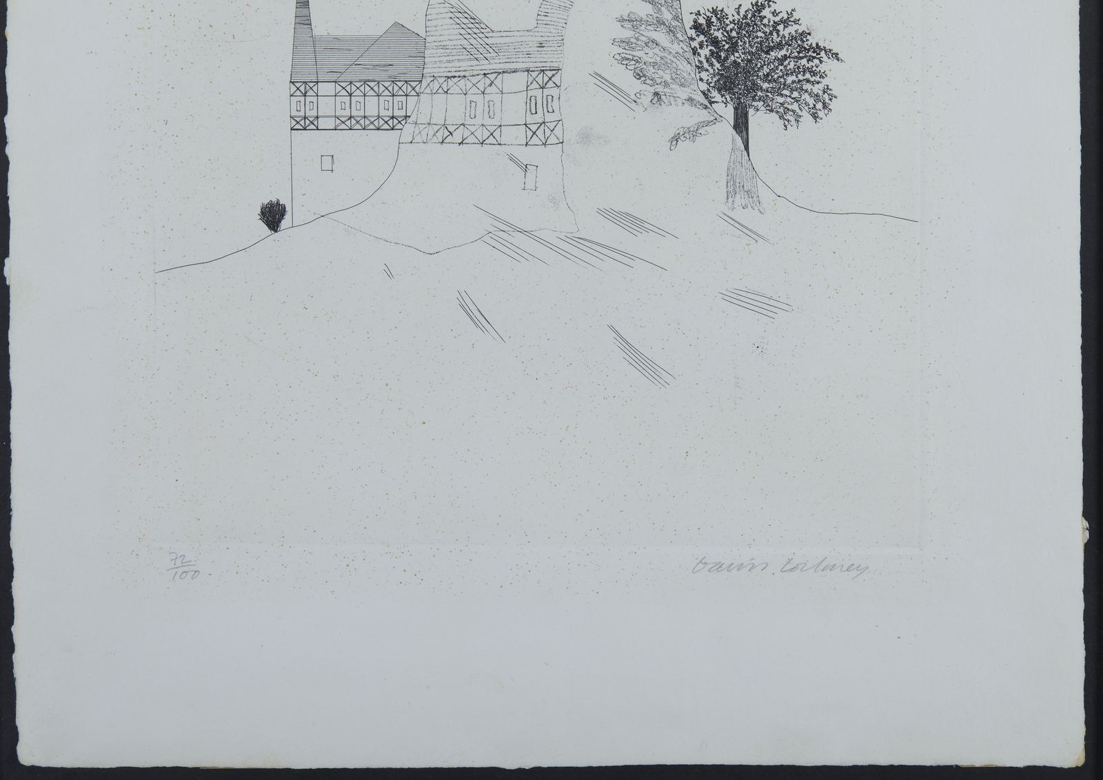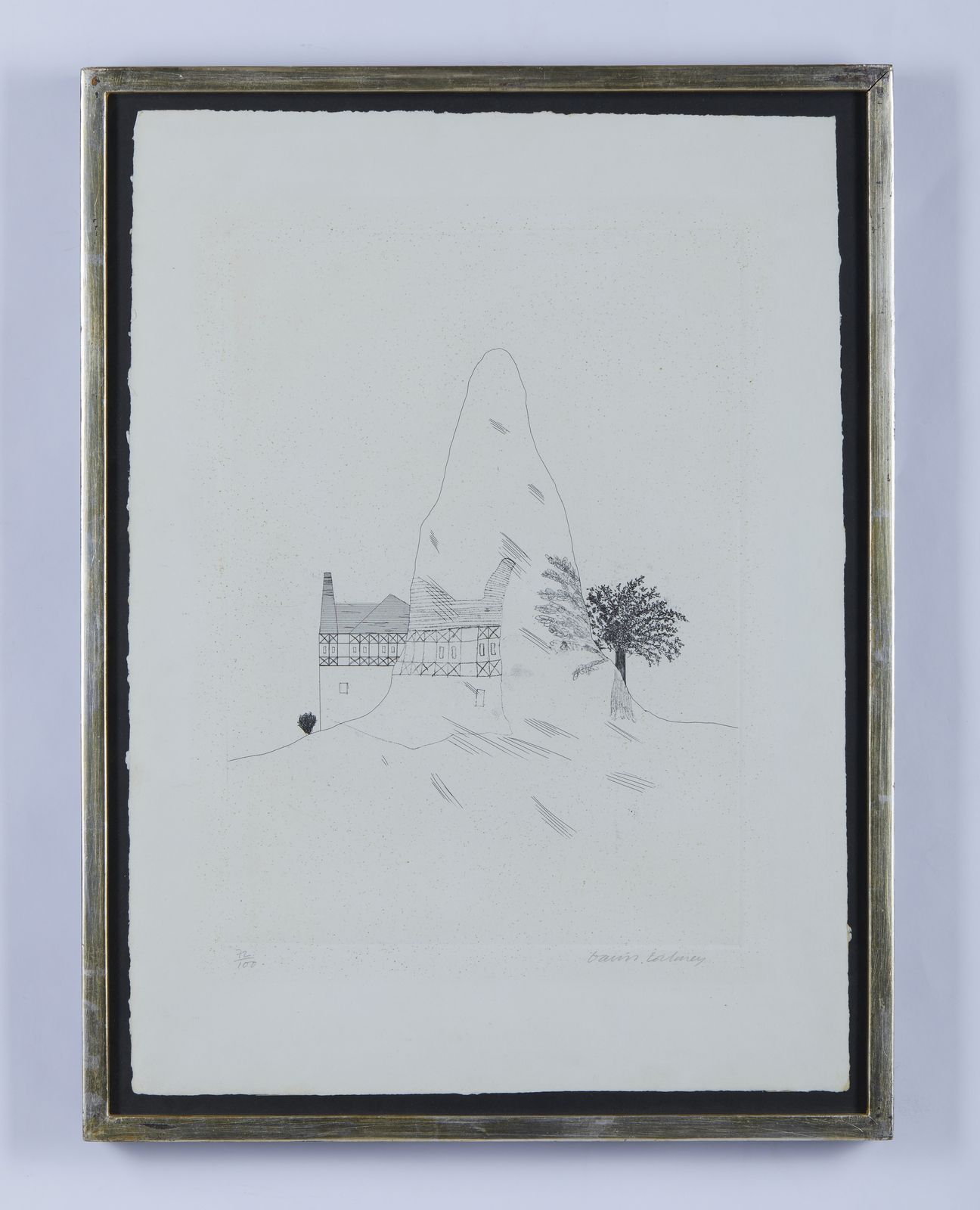72/100. Tiratura e firma in basso a matita. Il lotto è parte di una cartella composta da 39 acqueforti che l'artista ha creato per la serie 'Six Fairy Tales from the Brothers Grimm'. Per questa serie Hockney selezionò sei storie tratte dalle 220 dei fratelli Grimm, tra cui 'La leprotta di mare', 'Fundevogel', 'Raperonzolo', 'Il ragazzo che lasciò casa per imparare la paura', 'Il vecchio Rinkrank' e 'Rumpelstilzchen'. Dimensione lastra: 45x32.5 cm. Carta a mano Hodgkinson. Editore: Petersburg Press, Londra in collaborazione con Kasmin Gallery. Stampatore: Print Shop, Amsterdam. Edizione totale: libro stampato in 4 edizioni (A, B, C e D) di 100 esemplari + 15 AP. L'edizione totale è quindi di 400 + 60 prove di stampa. Difetti.