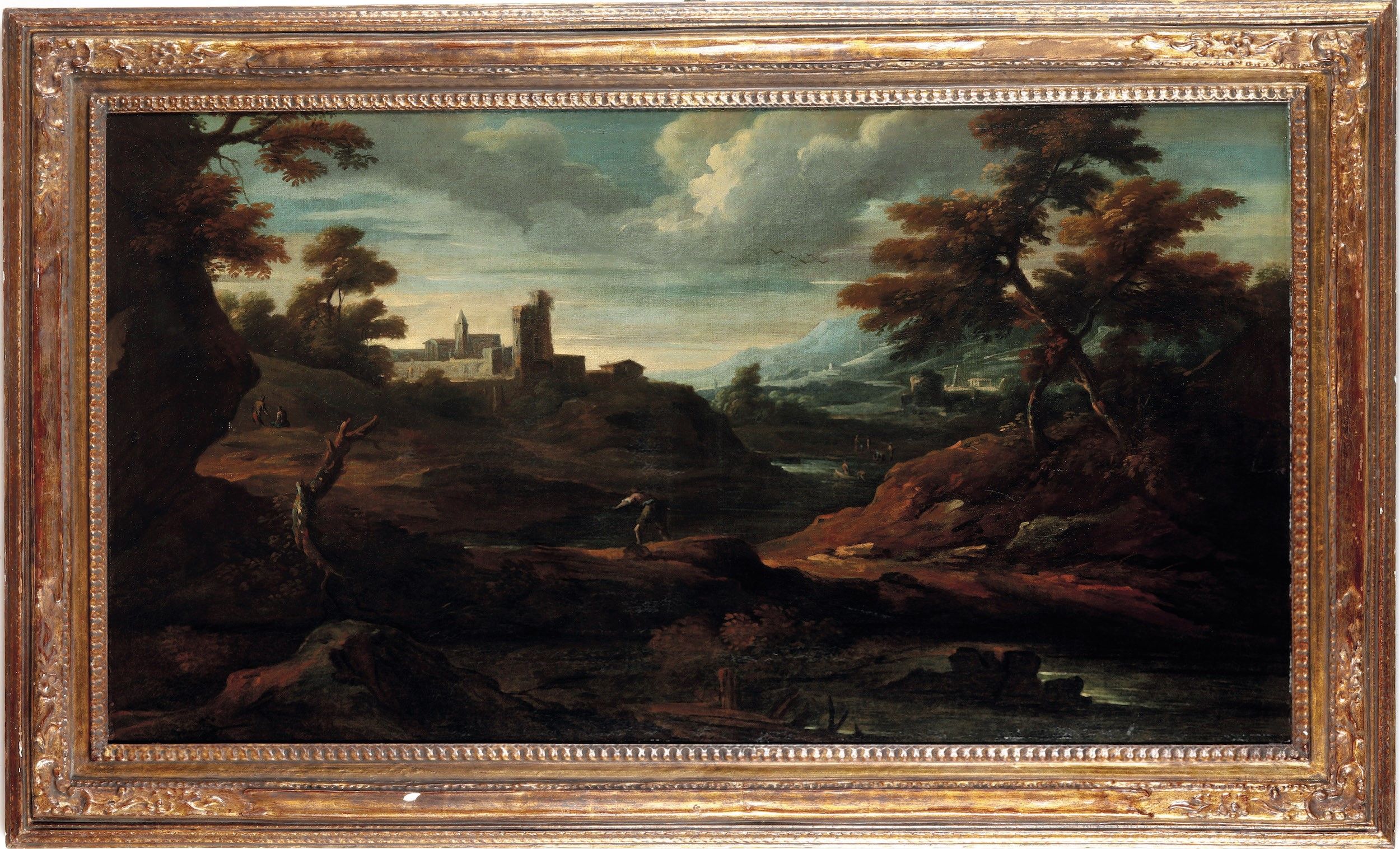Paesaggio con pescatori e città sullo sfondo